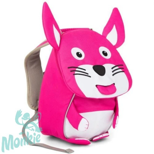 Divatos állatfigurás hátizsák puha vállpántokkal, rekeszekkel, oldalsó kulacstartókkal. Az Affenzahn hátizsákok divatosak, kényelmesek, ötletesek. A kedves kis állatfigurák nyelve kihúzható, kezeik mozgathatók. Mind a kisebb mind a nagyobb rekeszek cipzárral zárhatók.