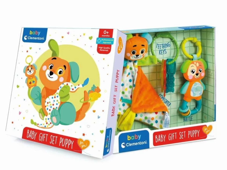 A Baby Clementoni babaváró csoamgja, kutyás változatban, remek köszöntő ajándék lehet kisgyermekek részére.