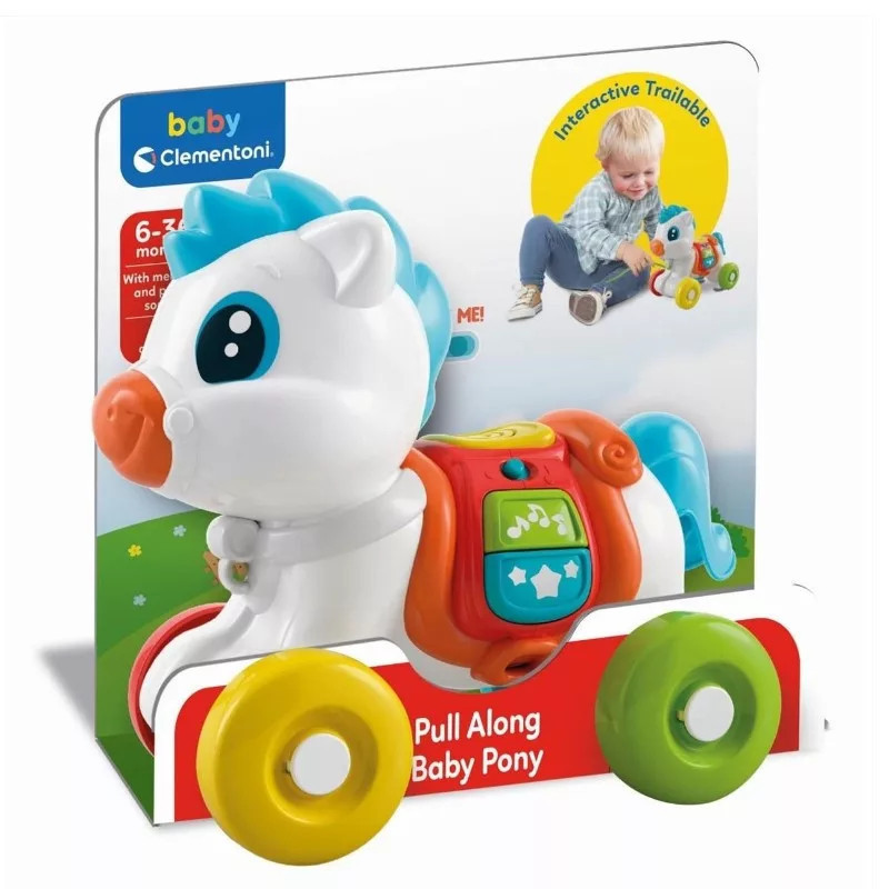 A Clementoni Zenélő póni húzható bébijáték egy aranyos póni, amely egy zsinóron húzható. A játék 6 hónapos kortól ajánlott, és számos interaktív funkcióval rendelkezik, amelyek segítenek a kisgyermekek fejlődésében.