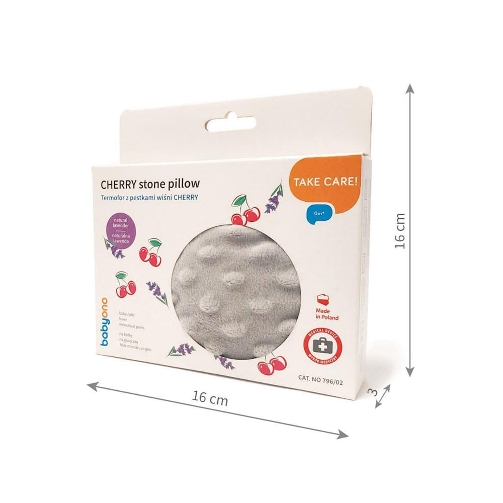 A CHERRY cseresznyemagos párnát különleges feladatokra tervezték. Hasznosnak bizonyulhat számos probléma ellensúlyozásában - a fájdalmas babakólikától kezdve a zúzódásokon és duzzanatokon át a menstruációs görcsökig és a szoptatás alatti mellfájdalomig. Használata során a helyzettõl függõen lehet meleg vagy hideg. Nyugtató aromaterápiás tulajdonságait is értékelni fogod, mivel a cseresznyemaghoz szárított levendulát adott a gyártó. A párna betétjét egy finom szürke színben kapható puha huzatba csomagolták. - Kiváló minõség A termék Lengyelországban készült. A betét elkészítéséhez kiváló minõségû cseresznyemagot és szárított levendulát használtak. - Ellazít Az párnához hozzáadott levendula nyugtató tulajdonságokkal rendelkezik. Illata csökkenti a stresszt, segít a babának ellazulni és elaludni. - Biztonság A cseresznyemagos párna biztonságos a gyermekek és a felnõttek számára. Természetes módon bocsátja ki a melegét, így kiküszöböli a leforrázás és a bõrkárosodás kockázatát. Nem tartalmaz kiömlõ folyadékokat. - Kényelem A huzatban lévõ kényelmes széles lyuk lehetõvé teszi, hogy a meleg vagy hideg betétet könnyen a huzatba helyezd. - Puha A cseresznyés párnát puha huzat rejti. Kellemes tapintású szövetbõl készítettük. A higiéniát könnyedén fenntarthatod - mindössze annyit kell tenned, hogy leveszed a huzatot és kimosod. - Bármely idõben, sok felhasználási mód Az igényeidtõl függõen a cseresznyemagos párnát hidegen vagy melegen is használhatod. Tudtad, hogy télen melegítheted vele a kezed, a forró napokon pedig hûsítheted vele a nyakadat? A cseresznyemagos párna számtalan módon használható, megkönnyebbülést nyújt a család legkisebb tagjainak és szüleiknek. Melegen: -csillapítja a baba kólika és puffadás tüneteit - nyugtatja az izmokat - könnyebbséget hoz a gerinc és ízületi fájdalmakra - enyhíti az isiász tüneteit - enyhíti arcüreggyulladás esetén -csökkenti a menstruációs fájdalmakat - felmelegíti a melleket szoptatáskor - felmelegíti a hideg lepedõt - felmelegíti a kezeket és lábakat - segít az elalvásban - javítja a vérkeringést és nyugtató tulajdonságokkal rendelkezik Hidegen: -segít csökkenteni a hõmérsékletet láz esetén -csillapítja a migrénes tüneteket - enyhülést hoz fejfájás esetén -nyugtatja a melleket tej pangás esetén -csökkenti a duzzanatot rándulások, zúzódások, sérülések esetén -segít az égési sérülések és rovarcsípések kezelésében Felmelegítés: Vedd ki a betétet a huzatból, tedd a betétet a mikrohullámú sütõbe (600 W -90 mp.), elektromos sütõbe (130°C -10 perc) vagy a radiátorra (amíg elég meleg lesz). A párna elõmelegítése után óvatosan keverd össze a cseresznyét és a levendulát, ellenõrizd a hõmérsékletet a csuklódon. Tedd vissza rá a huzatot. Hûtés: Vedd ki a betétet a huzatból, tedd a párnát a fagyasztóba (kb. 30 percre). Óvd a párnát az élelmiszerekkel való érintkezéstõl.Tedd vissza a huzatba. Fontos: -A párnát száraz helyen tartsd. -A huzatot soha ne mosd a magokkal együtt. -A külsõ huzatot nem szabad melegíteni. -A termék bármely összetevõjére való allergia esetén ne használd. -Minden használat elõtt gyõzõdj meg arról, hogy a termék nem sérült. Ha a betét elhasználódott/piszkos, cseréld ki egy új betétre. Technikai adatok: -100% pamut párnában cseresznyemagok és 1 db szárított levendula -összetétel: 150 g cseresznyemag, 0,5 g szárított levendula -Használati útmutató a dobozban -A felmelegítés után akár 1 órán keresztül is ad le hõt. -A külsõ borítás (huzat) minky textilanyagból (100% poliészter) készült. Kézzel mosható 40°C-on. BIZTONSÁGI INFORMÁCIÓK Távolítson el minden olyan biztonsági elemet, amely veszélyes lehet a gyermekre (a csomagolás részeit). Minden használat elõtt ellenõrizze a terméket. A sérülés vagy kopás elsõ jelére dobja ki. Mindig felnõtt felügyelete mellett használja. Ne használja, ha a használó allergiás a termékben található bármely anyagra. A termék apró alkatrészeket tartalmaz, amelyek gyermekek számára fulladásveszélyt jelentenek. Száraz helyen tárolandó. Tájékoztatásul javasoljuk a csomagolás megõrzését. A csomagolást tartsa gyermekektõl elzárva.