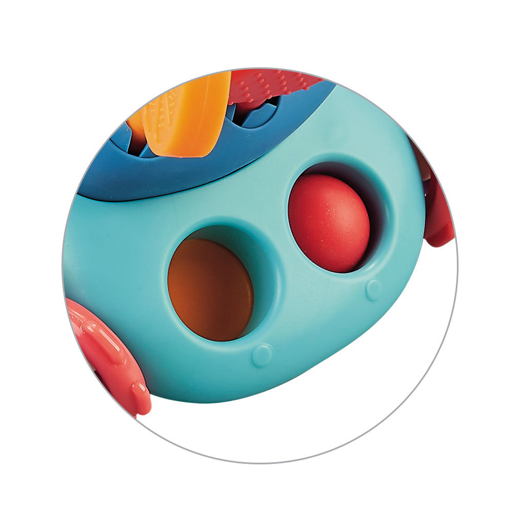 A BOTTLE egy többfunkciós szenzoros játék, amelyet a gyermekek átfogó fejlõdésének támogatására terveztek. Serkenti a gyermekek motoros képességeinek fejlõdését. Javítja a kisujjak rugalmasságát és koordinációját is. A játék biztonságos szilikonból és tartós mûanyagból készült különbözõ elemekbõl áll. Szoríthatod, nyomhatod, húzhatod és mozgathatod. Növeli a vonzerejét a gyermek szemében, és ösztönzi az aktív és kreatív felfedezést. Kifejezõ és kontrasztos színei jellemzik, amelyek felkeltik a kisgyermek figyelmét, és segítenek megtanulni megkülönböztetni a színeket és a formákat. - a játék aktívan támogatja a kisgyermek érzékszervi fejlõdését. Csörgõ elemekkel, interaktív gombokkal és puha végû szilikon húrokkal van felszerelve - a formát, a méretet és a súlyt gondosan választották ki, hogy tökéletesen megfeleljenek a gyermekek kézi szükségleteinek. A játék megkönnyíti az ujjak megfogását, tartását és kezelését - a gyümölcs alakú rágókák kiváló minõségû szilikonból készültek. Puha és biztonságos szerkezete kellemesen masszírozza az ínyt és megkönnyebbülést hoz a fogzás során - a játék kialakítását kifejezetten a biztonságra tervezték. Minden felhasznált anyag nem mérgezõ és BPA-mentes - a POP IN gombok a mozgáshoz és a nyomáshoz biztosítják a kézi készségek és a szem-kéz koordináció fejlesztését Távolítson el minden olyan biztonsági elemet a játékról, amely veszélyes lehet a gyermekre. Minden alkalommal, amikor játékot ad egy gyermeknek, ellenõrizze annak minõségét. Csak egy sértetlen játék garantálja gyermeke biztonságos használatát. Dobja el a játékot, amint észreveszi a sérülés elsõ jeleit. A játék felnõtt felügyelete mellett ajánlott. A játék megfelel az EN 71 szabványnak. Javasoljuk, hogy referenciaként õrizze meg a csomagolást. A csomagolást tartsa távol a gyermekektõl. A csomagolás és a rögzítõelemek nem minõsülnek játéknak, és veszélyt jelenthetnek a gyermek egészségére. - a termék méretei: 11 x 10 cm - a csomag méretei: 13 x 11 x 7 cm 18 hónapos kortól ajánlott