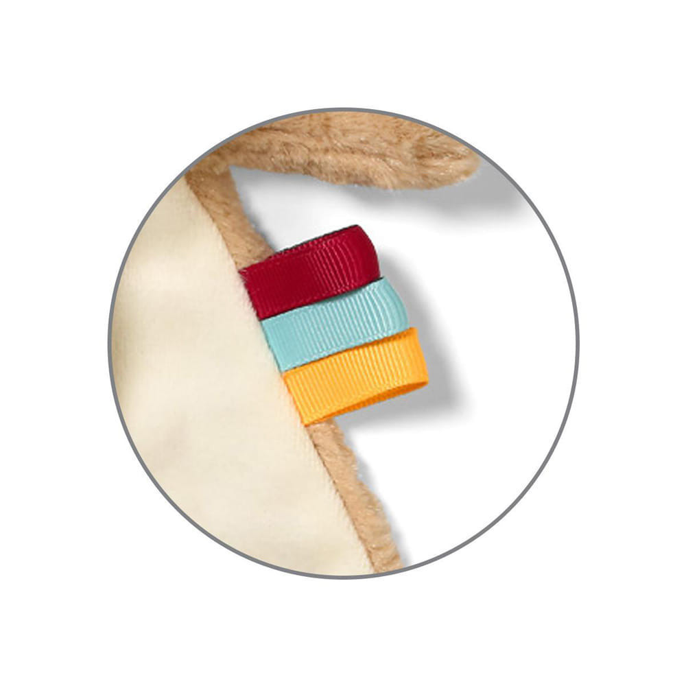 A kutyus szundikendõ a baba legjobb barátja lehet. Tökéletes alvótárs és játszótárs lesz. A színes címkéknek köszönhetõen a baba nem fog unatkozni, miközben a cumitartó gondoskodik arról, hogy a cumi mindig a közelben legyen. Ideális elsõ bújós játék lesz egy baba számára. A játszócumik gyakran leesnek és elvesznek a játékok útvesztõjében. A praktikus cumitartó megakadályozza, hogy a cumi elvesszen és ne szennyezõdjön. A színes címkék a világ felfedezésére ösztönzik a babát, és felkeltik a kíváncsiságát. Segíthetnek a kicsinek beindítani a fantáziáját és fejleszteni a manuális készségeket. Puha és kellemes tapintású szundikendõnk megnyugtatja babáját. Csillapítja az érzelmeket, és segít a babának elaludni. Anyaga: 100% poliészter Mérete: kb.: 26 x 21cm