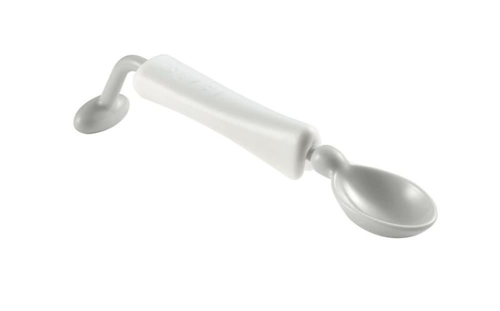 • Forgó nyél: lehetővé teszi, hogy a kanál mindig vízszintesen maradjon, és megakadályozza, hogy a gyermek kiborítsa a kanál tartalmát, ha rosszul tartja a nyelet.