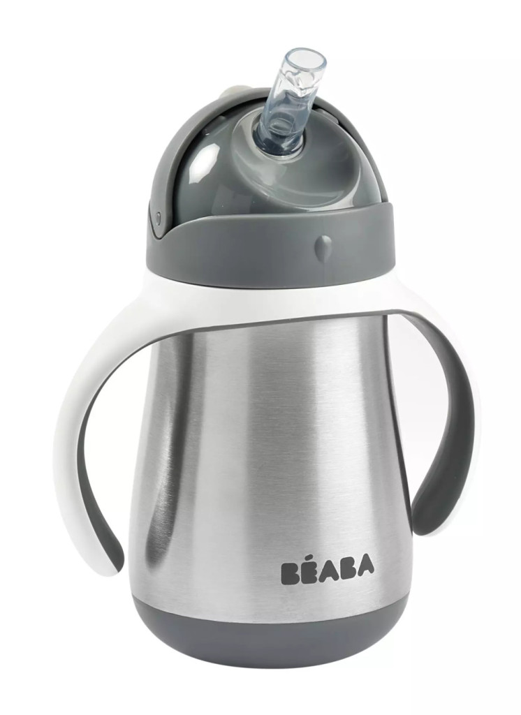 Béaba Rozsdamentes Acél Szívószálas Ivópohár 250 ml - Sötétszürke