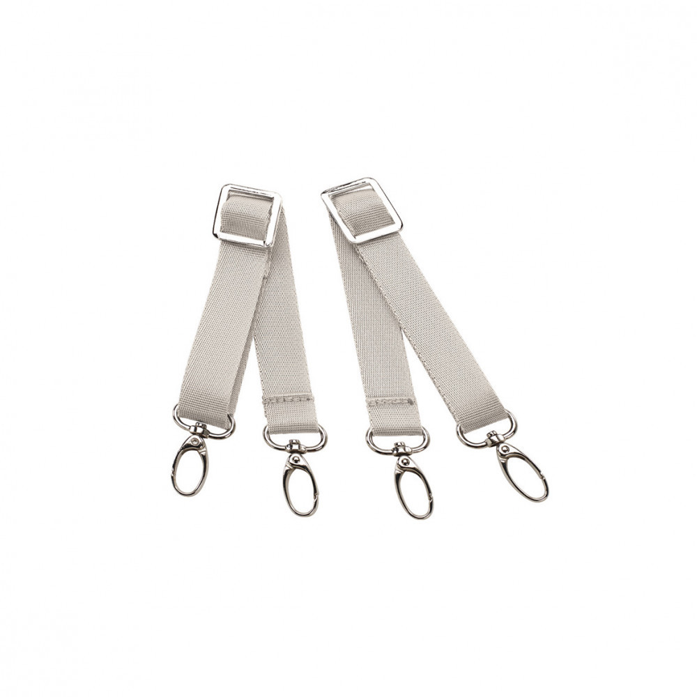 Beépített rögzítő rendszer karabinerhorgokkal: a legtöbb fogantyúval ellátott babakocsira rögzíthető.