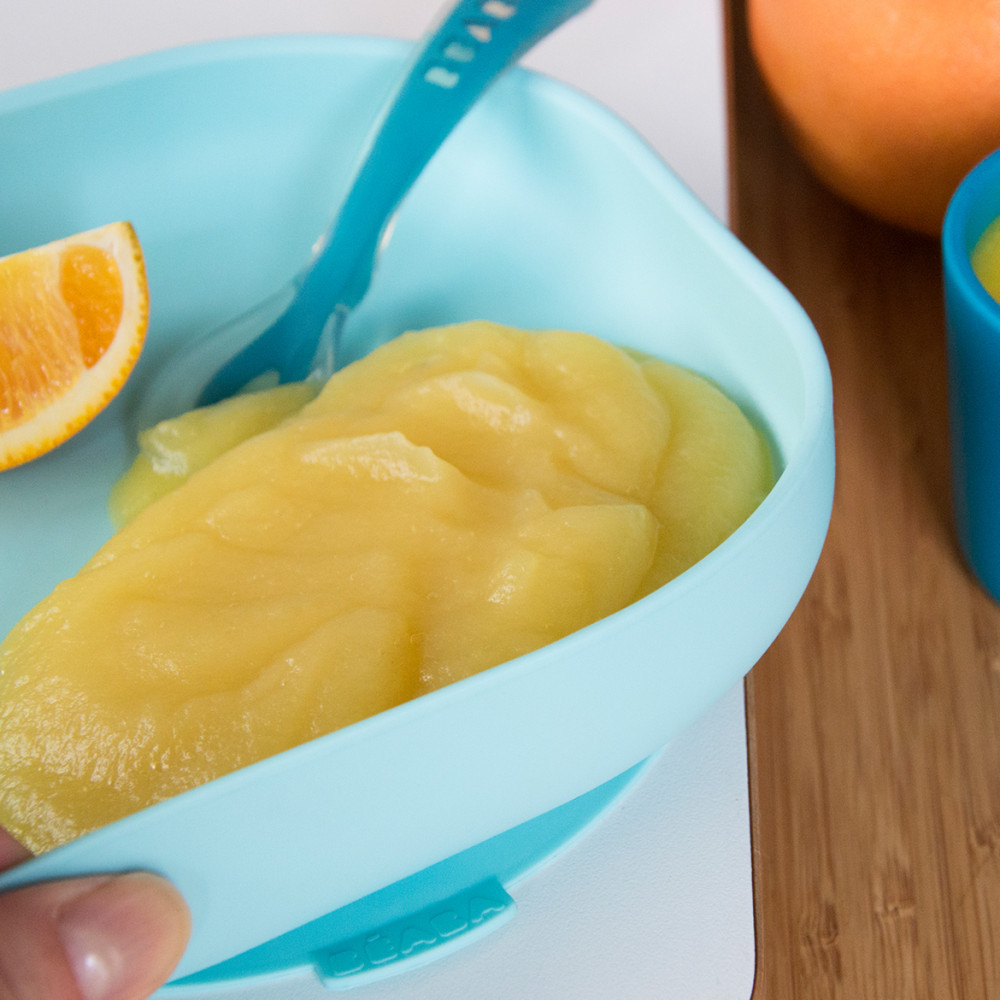 100% szilikon, puha és rendkívül ellenálló anyag. Tapadókoronggal ellátva: az asztalhoz való tapadáshoz. A kis kiugró nyelvnek köszönhetően könnyű a tányért eltávolítani az asztalról a tapadokorong ellenére. Mikrohullámú sütőben használható és mosogatógépben mosható. Bpa-mentes (a hatályos előírásoknak megfelelően), PVC-mentes, ftalátmentes.
