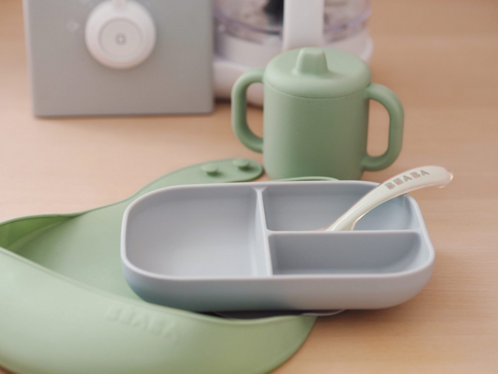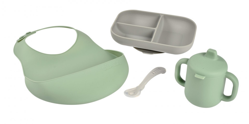 Béaba Szilikon tanuló étkészlet - Zsályazöld