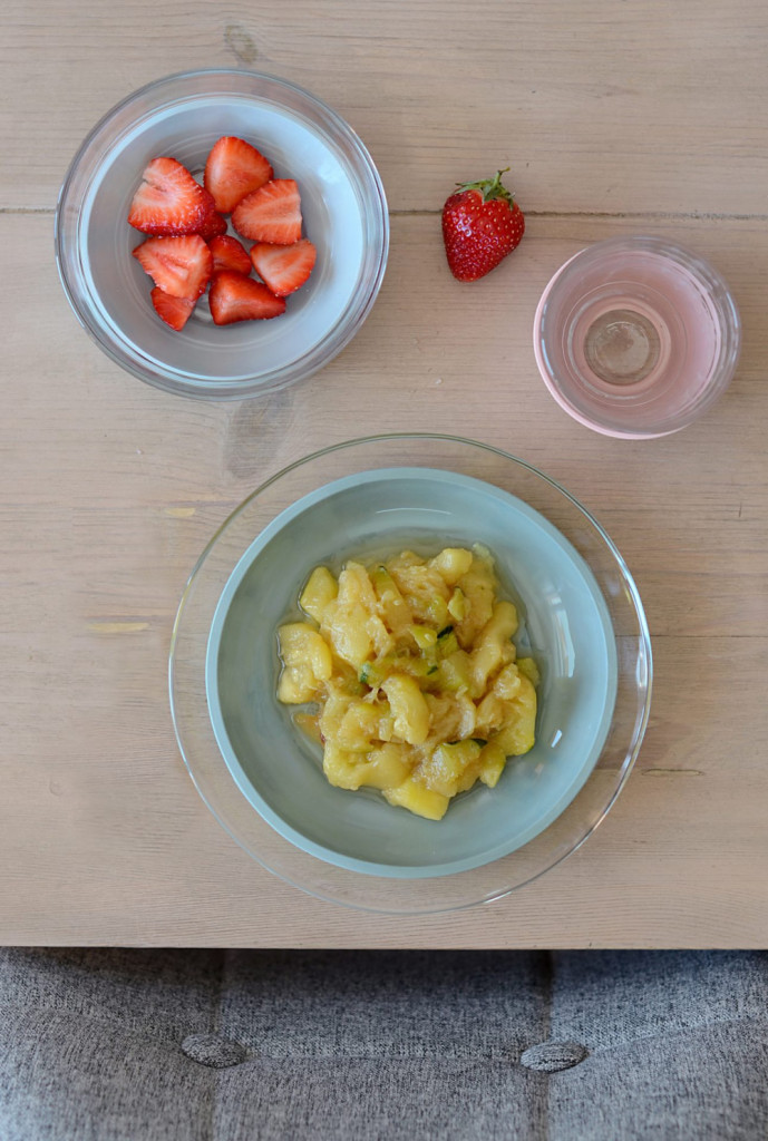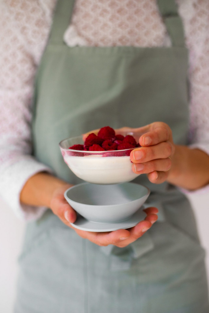 A készlet tartalma: egy tányér, egy tálka és egy puha talpú üvegpohár.