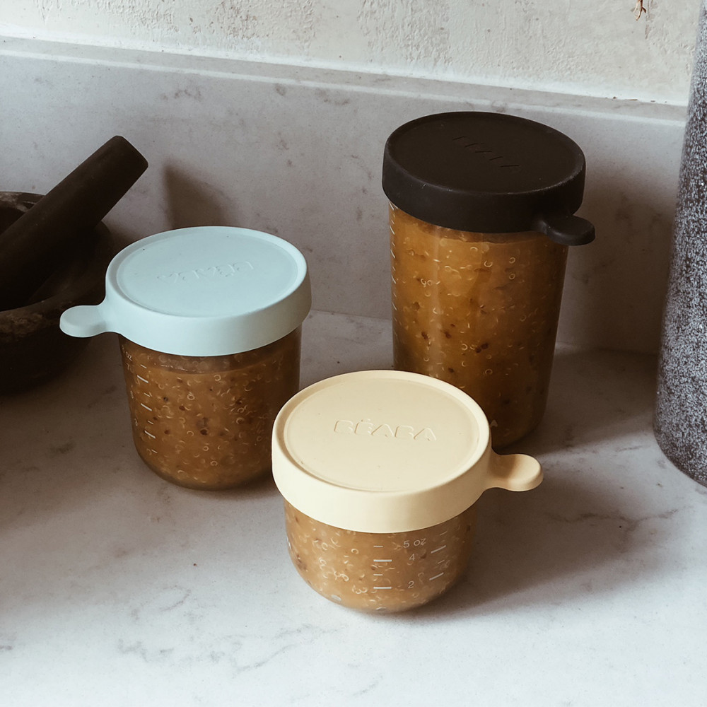 Béaba Üveg tároló doboz szett 3 db - 150 ml Sárga - 250 ml Világoskék - 400 ml Sötétkék -