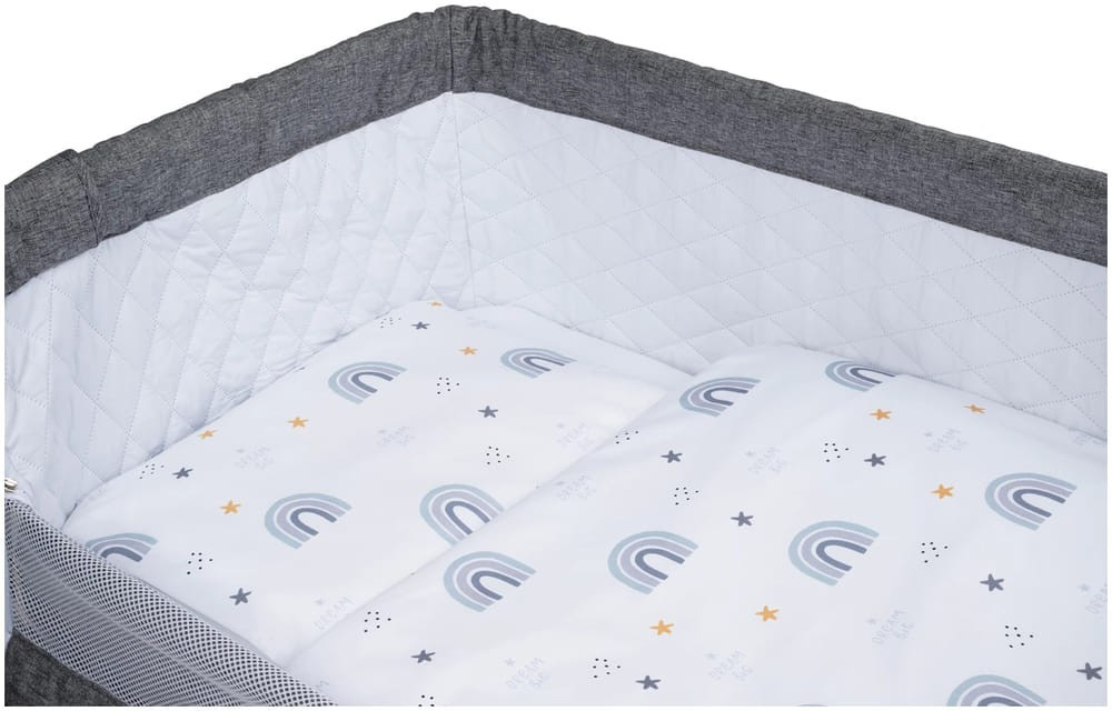 Az ágyneműgarnitúra 50 x 90 x 33 cm méretű bölcsőkhöz és kiságyakhoz alkalmas.