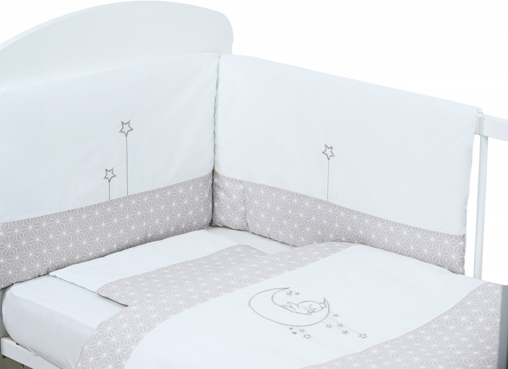 Az ágynemű garnitúra 120x60 és 140x70 cm-es kiságyakhoz is használható.