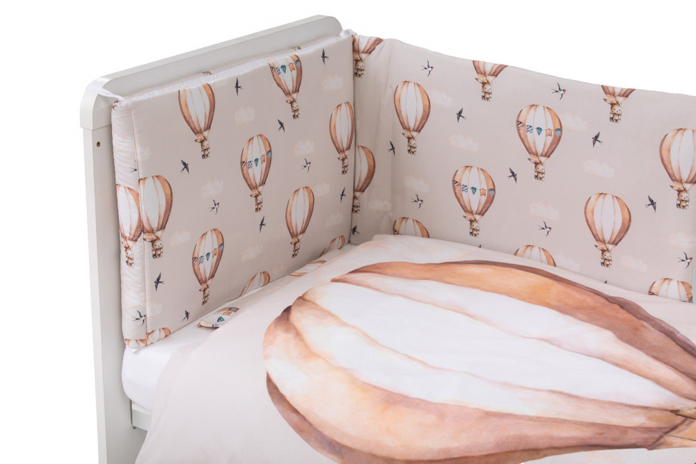 A szett modern és tökéletes megjelenése minden gyermek szobájának szép kiegészítője lehet. Az ágynemű garnitúra is univerzális, hiszen 120x60 és 140x70 cm-es kiságyakhoz is használható. A szettben található paplan mérete 85 x 115 cm, a párna mérete 30 x 40 cm, a fejvédő 40 x 190 cm, a lepedő 125 x 60 x 25 cm, a paplan huzat mérete 90 x 120 cm, míg a párna huzat 30 x 40 cm.