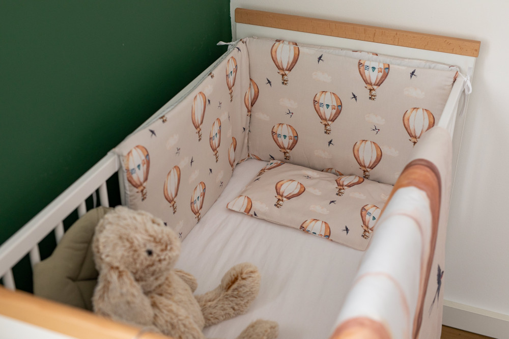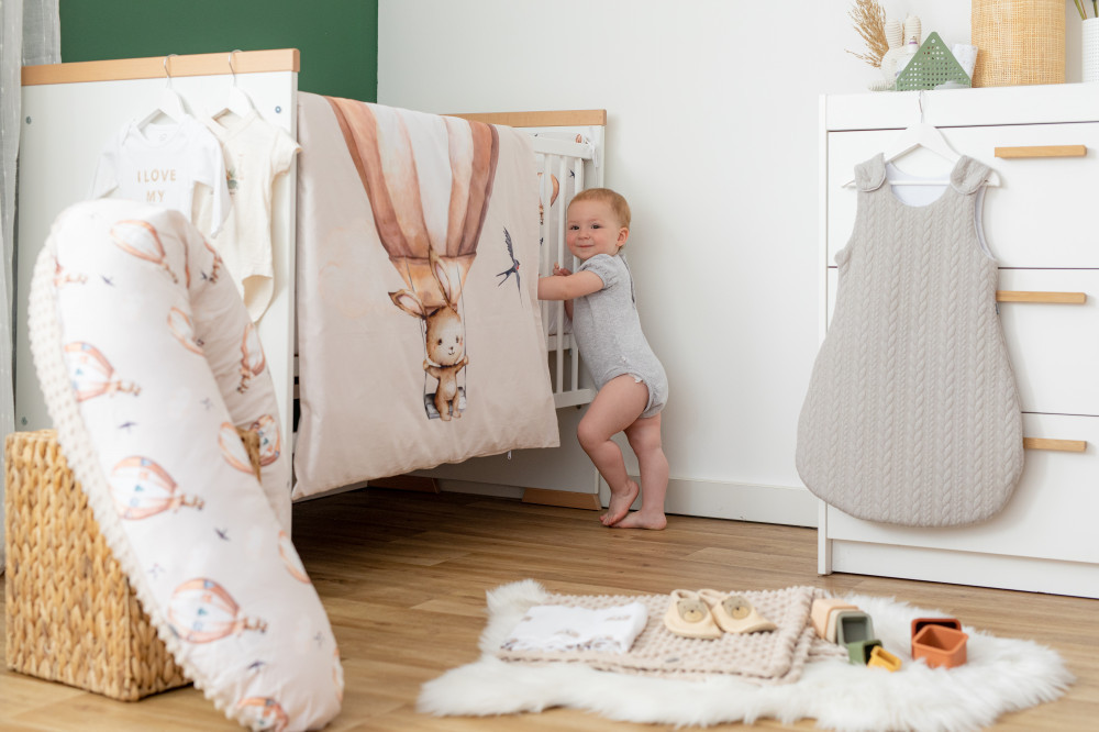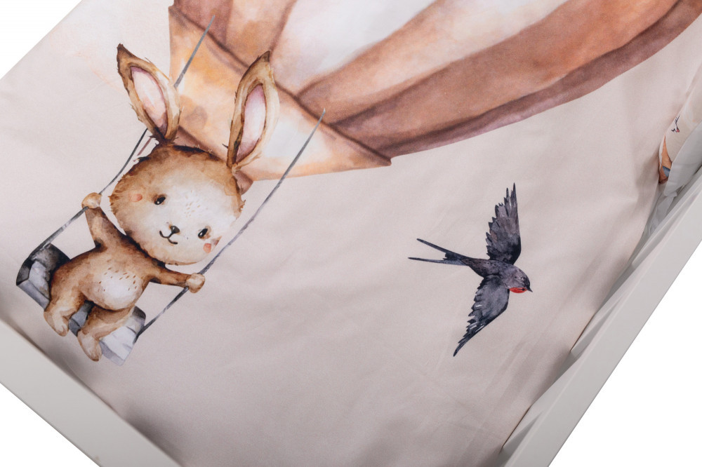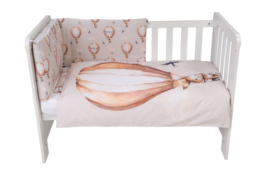 A Bubaba 6 részes ágynemű szett - Flying bunny beige, egy igazán bájos választás minden kicsi számára. A szettben megtalálható mindaz, amire szüksége lehet a tökéletes alvás érdekében - finom tapintású paplan, párna, fejvédő, lepedő, valamint paplan- és párnahuzat. A gyengéd, minőségi és kényelmes textiltermékek gondosan megtervezett részletekkel és vászonokkal vannak díszítve, amelyeket kifejezetten a gyermeki gondolatok és vágyak ihlettek. Az ágynemű anyaga puha és légáteresztő, ami garantáltan segíti a baba bőrének lélegzését.