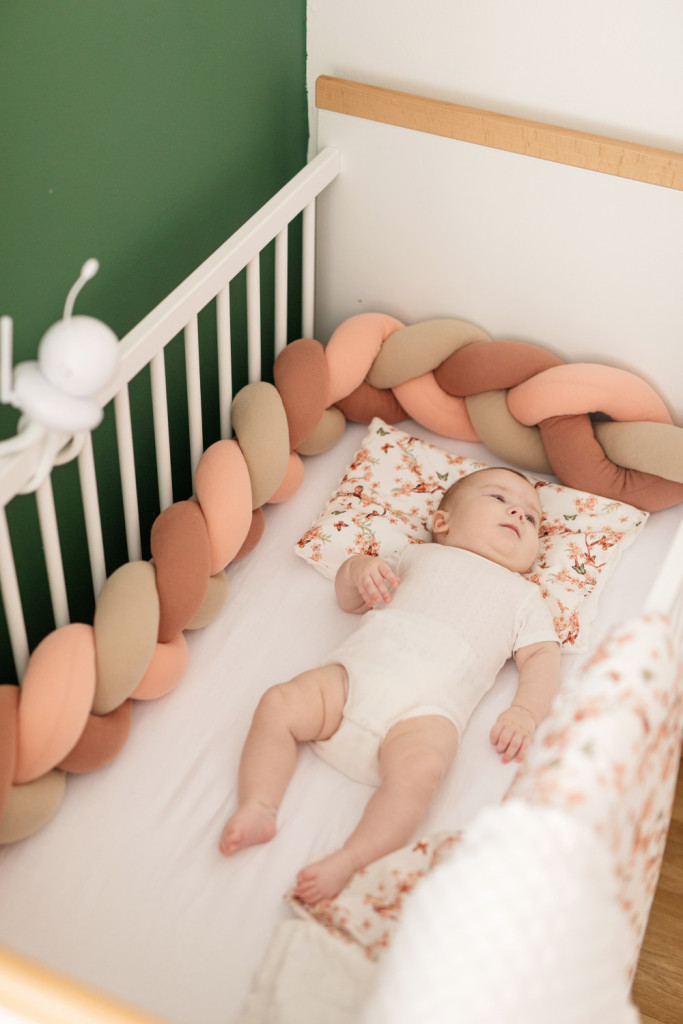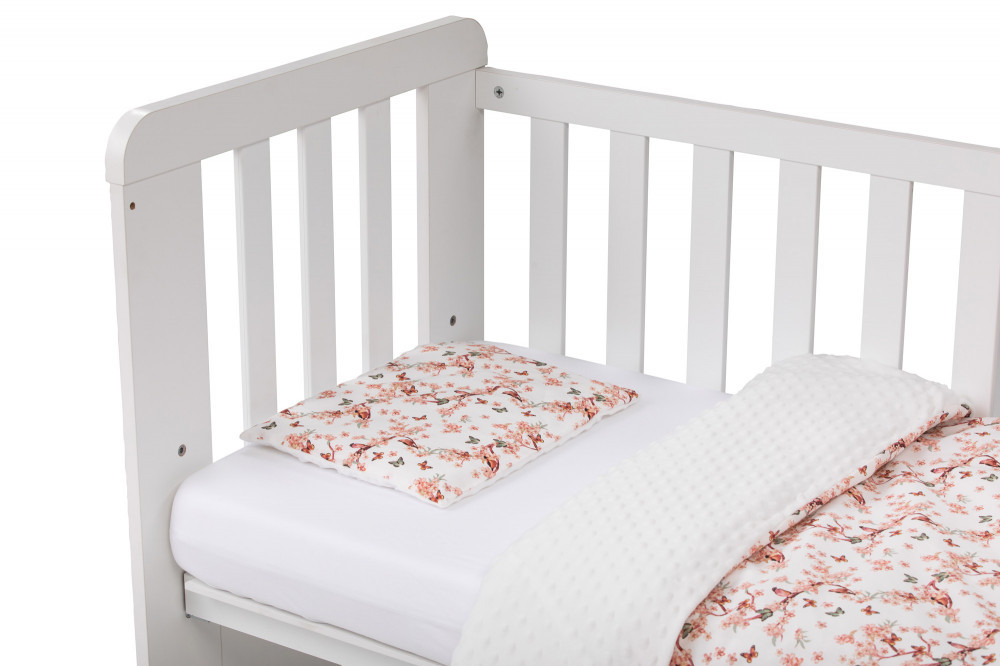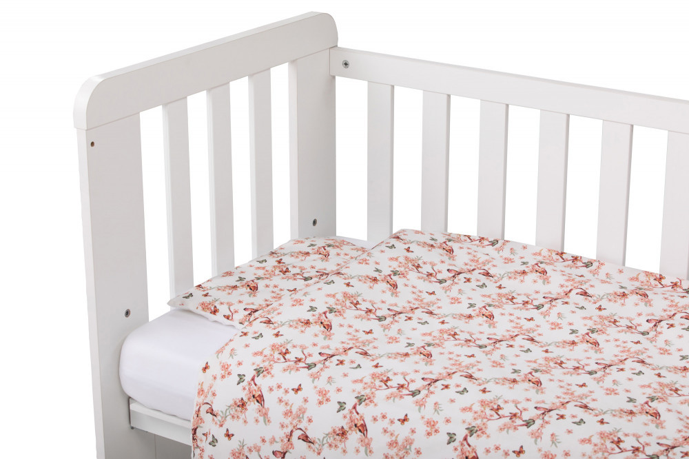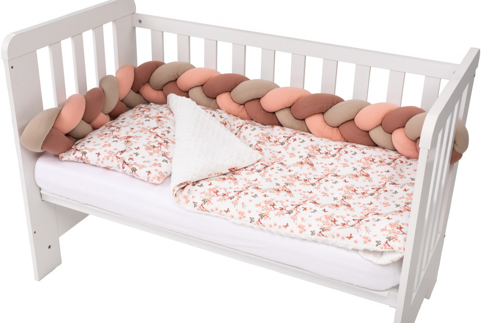 A garnitúra 120x60 és 140x70 cm-es kiságyakhoz is használható, így különböző méretű ágyakhoz is tökéletesen illeszkedik. A szett tartalma: egy 85 x 115 cm-es paplan, egy 30 x 40 cm-es párna, egy 235x15 cm-es fonott rácsvédő, egy 125 x 60 x 25 cm-es lepedő, egy 90 x 120 cm-es paplan huzat és egy 30 x 40 cm-es párna huzat. Minden darab 100% pamut külsőt és 100% poliészter töltetet tartalmaz, így kiválóan ellenállnak a mindennapos használatnak.