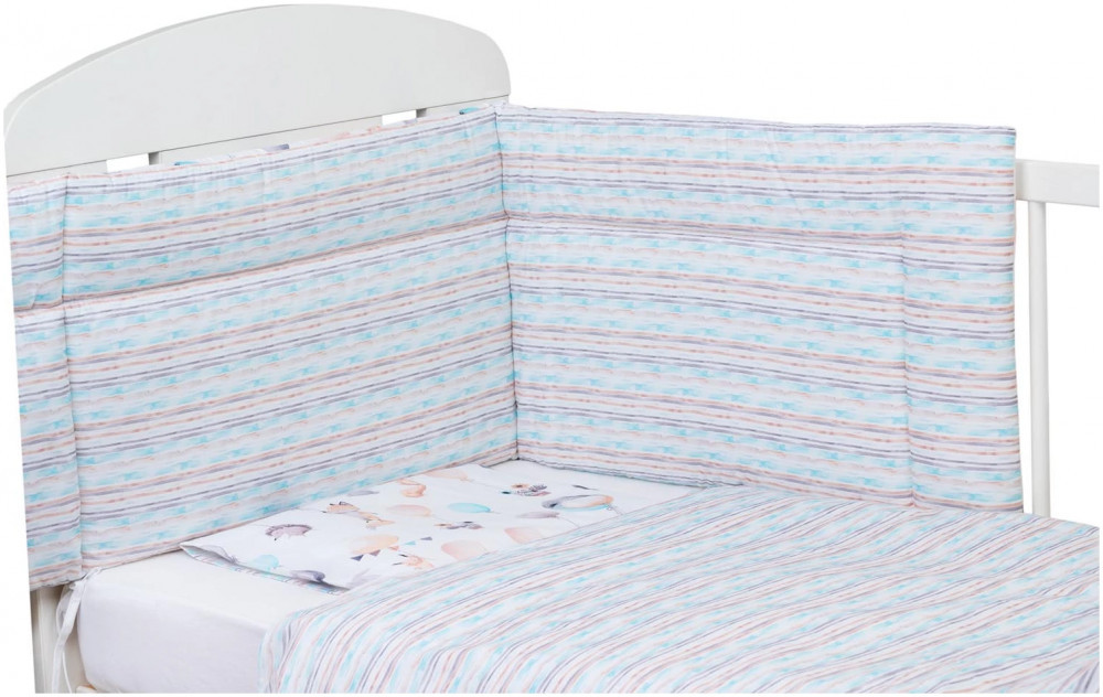 Az ágynemű garnitúra 120x60 és 140x70 cm-es kiságyakhoz is használható.