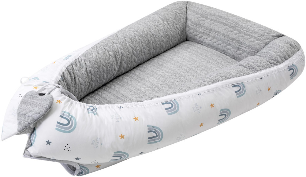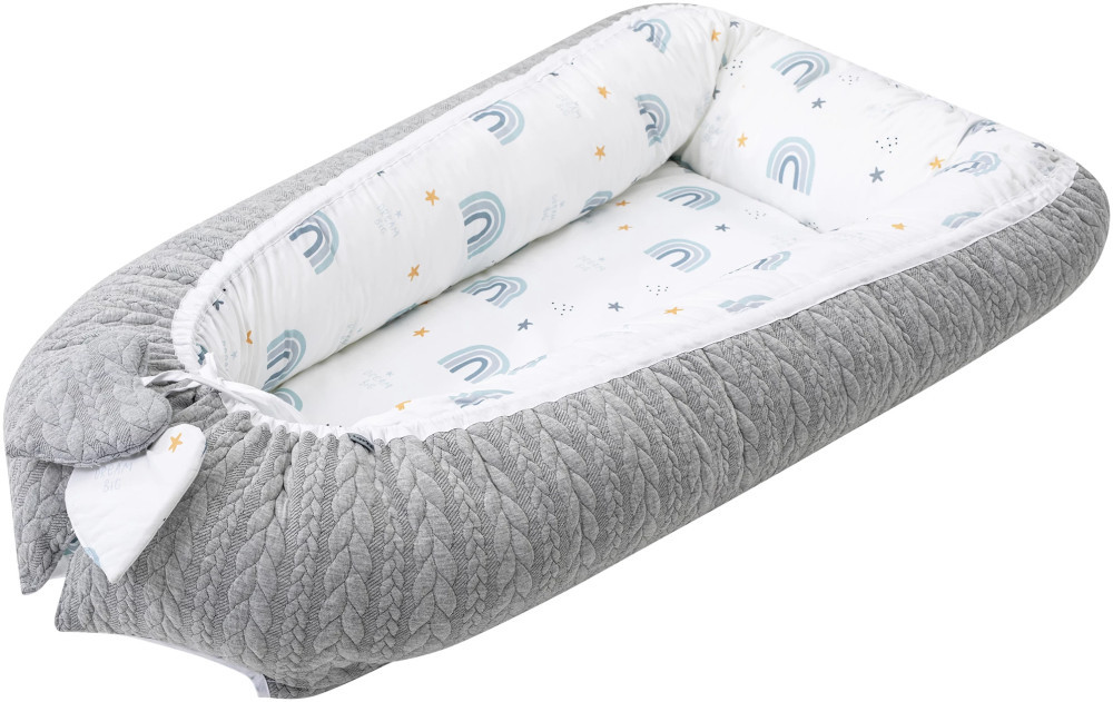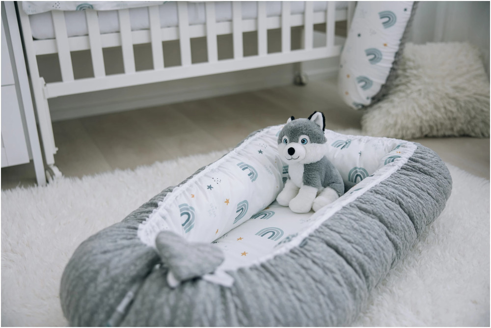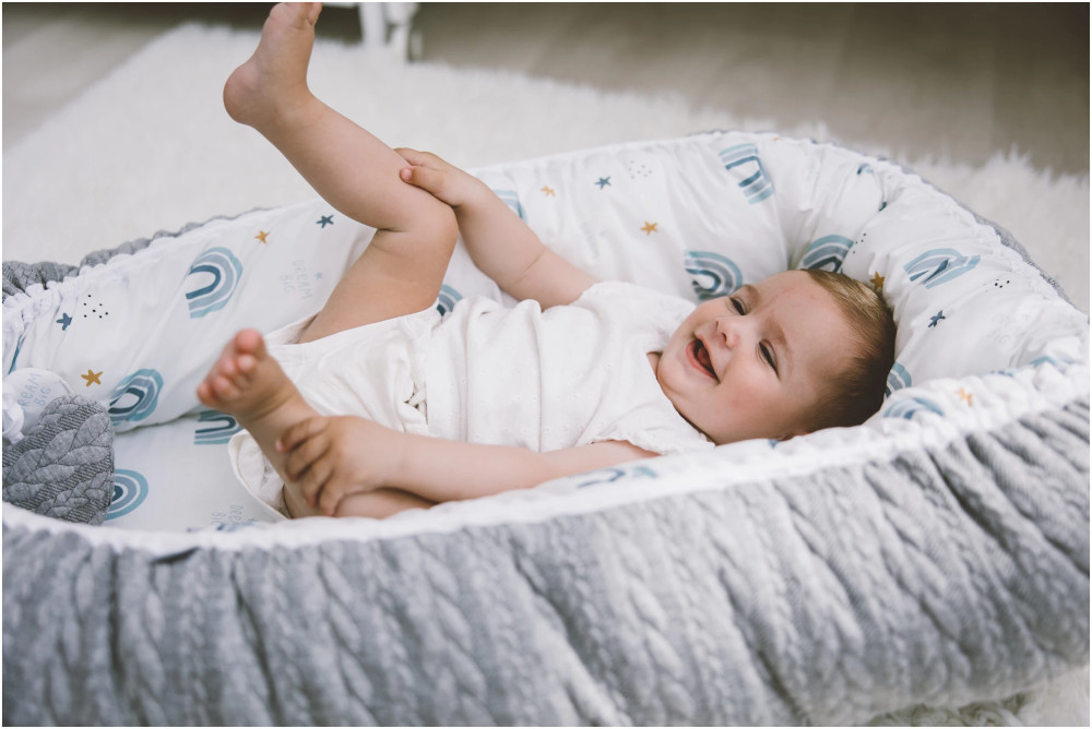 - Biztonság érzetet ad a csecsemőnek a számára tágnak érzékelhető babaágyban, vagy a kanapén, a játszószőnyegen.