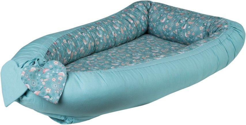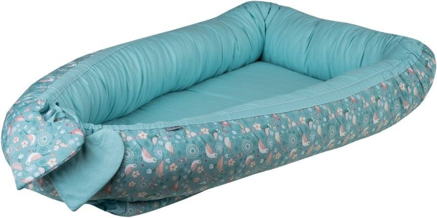Bubaba babafészek pamutvászon L méret- Türkizkék, madárkás