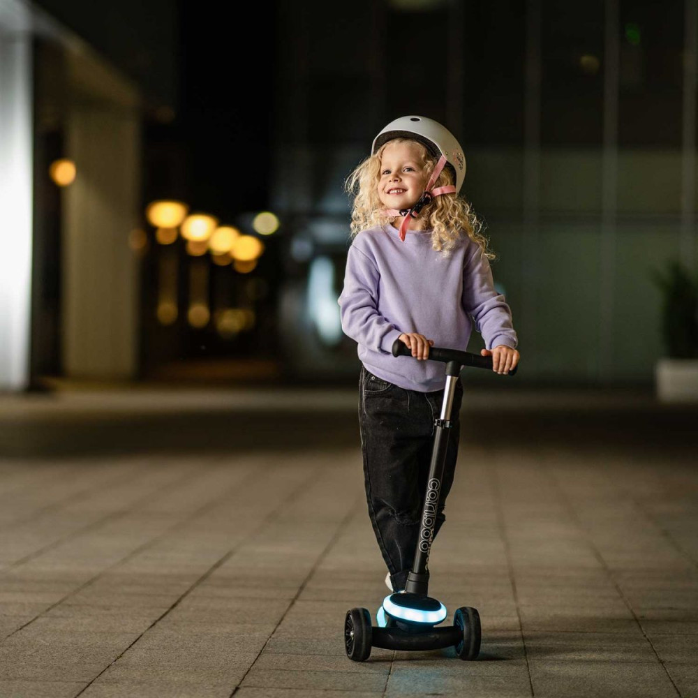 A LEDstar roller 3 kerékkel segíti a gyermeket egyensúlya megtartásában és segíti a balesetmentes szórakozást kezdők és kisebbek számára is. Állítható kormánymagasságának köszönhetően sokáig kíséri el kis gazdáját a sportos szórakozások során. A kormányon található gomb megnyomásával a fellépő fényárba borul, és az izgalmakat tovább fokozzák a különböző világító módok. Kék árnyalatban.