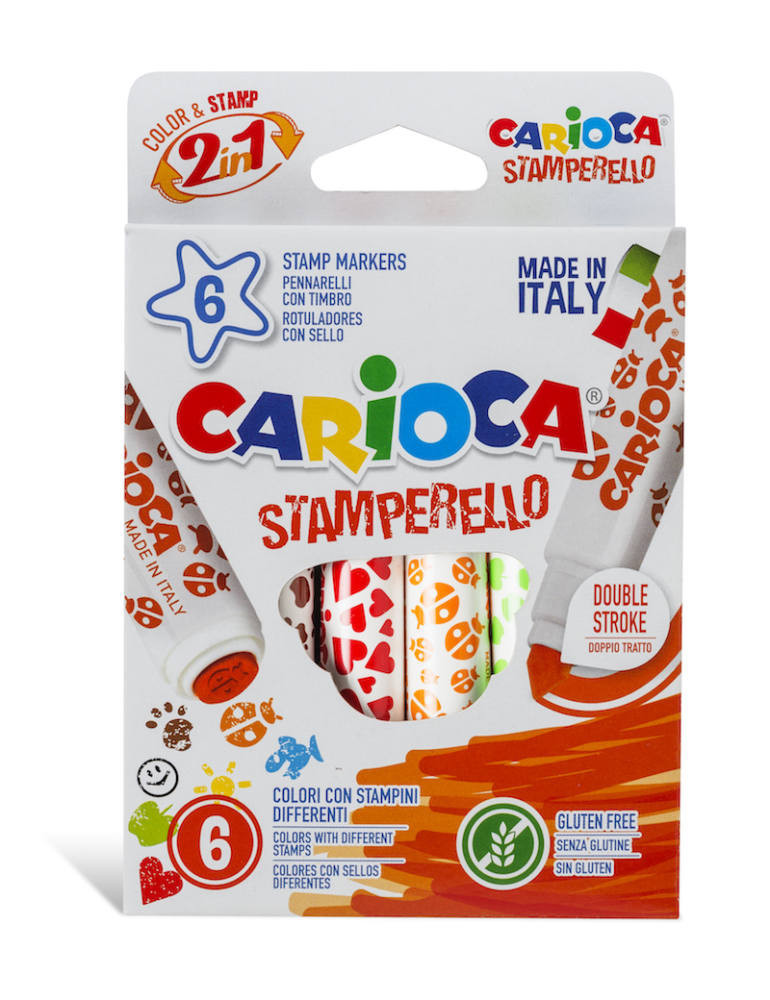 A Carioca Nyomdás végű filctoll egy igazi újdonság. A kreatív eszközzel nemcsak a rajzolás nyújt csodás élményt az alkotni vágyóknak. A filctollak végén különböző motívumok, minták segítségével készíthetnek szebbnél szebb pecsétlenyomatokat is.