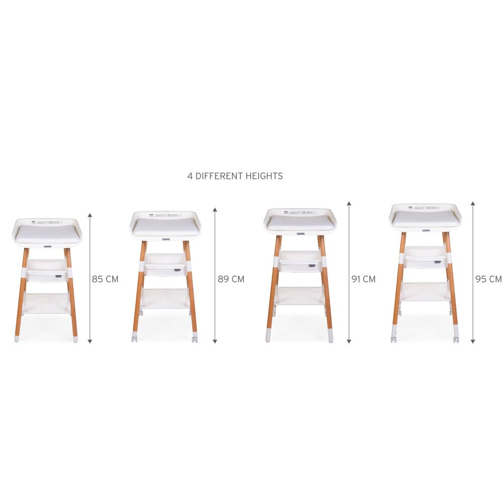 A fehér Evolux pelenkázóasztal az első olyan termék, mely 4 különböző magasságban használható. A kerekeknek köszönhetően az asztalka könnyen mozgatható egyik szobából a másikba. A pelenkázó maximum 15 kg-os babák számára használható. Az árban egy vízálló és mosható párna is benne van.