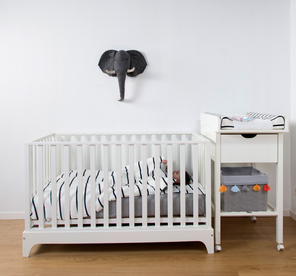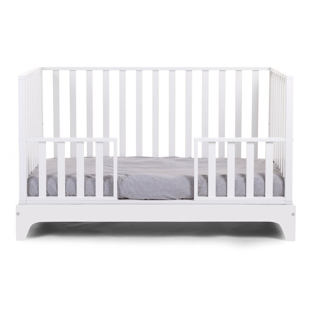 Ez a gyönyörű, kiváló minőségű kiságy ágy magasabb kerettel rendelkezik. Fehér színe és minimalista kialakítása időtlen megjelenést kölcsönöz az ágynak. Az ágy gyermeked növekedésével állítható. Az kiságy alja 3 különböző magasságra állítható a gyermek korától és fejlődésétől függően. Kezdetben a baba 4 zárt rúd között aludhat biztonságban. Mikor gyermeked már idősebb lesz, az egyik zárt oldal leváltható egy félig nyitott oldalra. Ez a félig nyitott oldal egyfajta ágysínként működik, és megakadályozza, hogy a féltett kincsünk kiessen az ágyból. Mikor gyermeked már nyitott ágyban alszik, a félig nyitott oldal természetesen levehető, és az utolsó fázisban pedig minden sáv eltávolíthatóvá válik. Ha az ágy esetleg idővel túl kicsivé válik gyermeked számára, az ágyat akár hangulatos kanapéként is használhatjátok. Adj hozzá néhány kényelmes párnát, és kész is van!