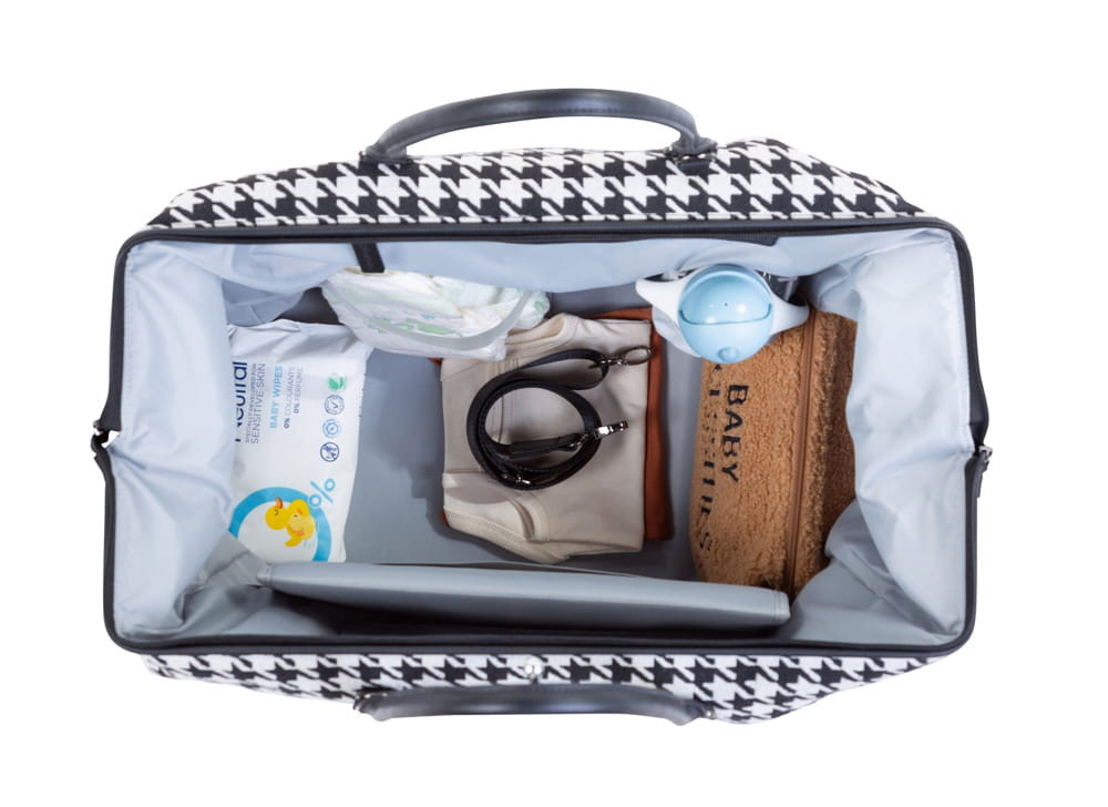 A táska belsejében található különböző rekeszek és rugalmas pántok rendkívül egyszerűvé teszik a Mommy Bag be- és kipakolását. Egy praktikus, összecsukható pelenkázószőnyeg és hordszíj is mellékelve van, így könnyedén átviheti a pelenkázótáskát a vállán.