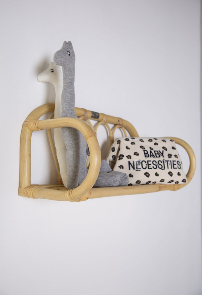 Ez a gyönyörű nádból készült polc azonnal bohém hangulatot varázsol a trendi gyerekszobába vagy a nappaliba. Tökéletes lehet apróságok tárolására vagy egyszerűen csak dekorációként is.