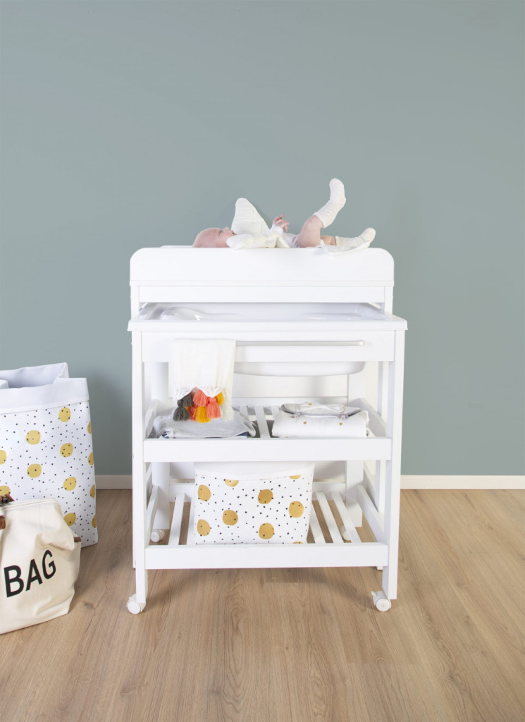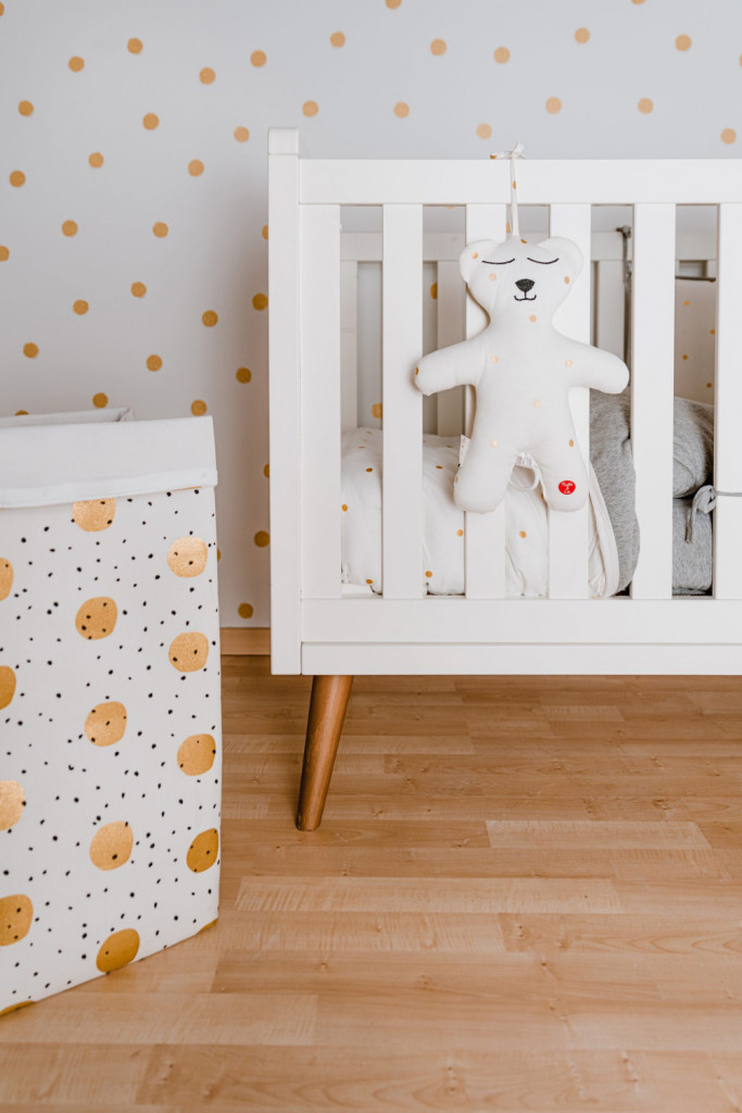 Childhome Tárolókosárka - 32x32x60 cm - Vászon - Arany Pöttyös/Fehér