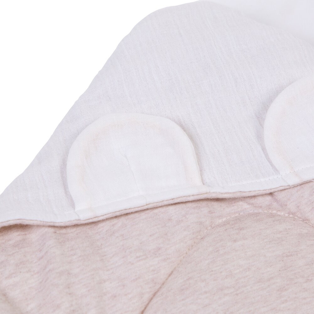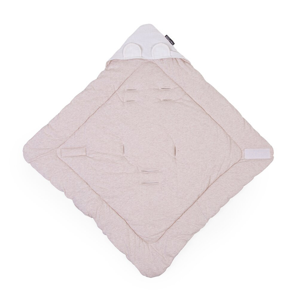 Ez a meleg és puha bézs színű, mackós hímzéssel ellátott babapólya a legnagyobb kényelmet biztosítja babád számára. A biztonsági öveknek kialakított lyukak segítségével akár babakocsiban is használhatod a takarót.