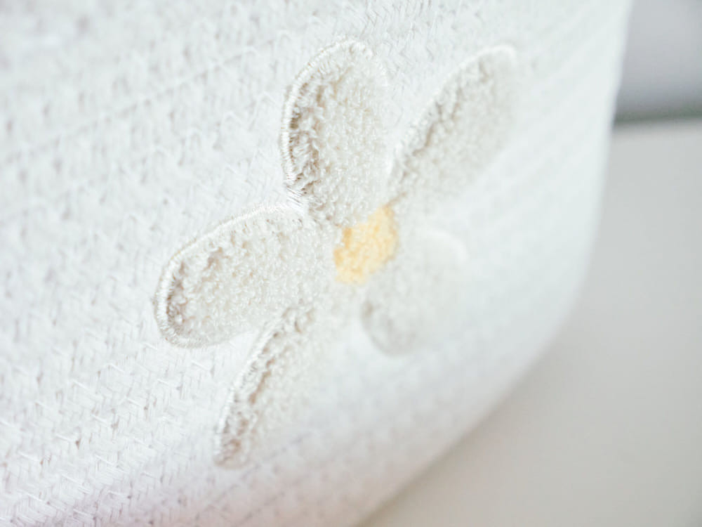 Ez a szép virág alakú tárolókosár kiválóan alkalmas különféle tárgyak, például játékok, könyvek, ruházat és kiegészítők tárolására. A kosár praktikus belső béléssel rendelkezik, amely nedves ruhával könnyen tisztítható.