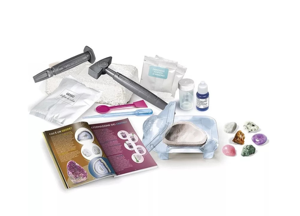 A készlet az ásványok és geódák világába repíti a kis kutatókat, és gyönyörű ásványokat rejt. Az ásványokat egy gipsztömbben találhatók, amit a készletben található véső, és kalapács segítségével lehet felszínre hozni. A készlet tudományos alapokon nyugvó információkat, eszközöket, és anyagokat tartalmaz.