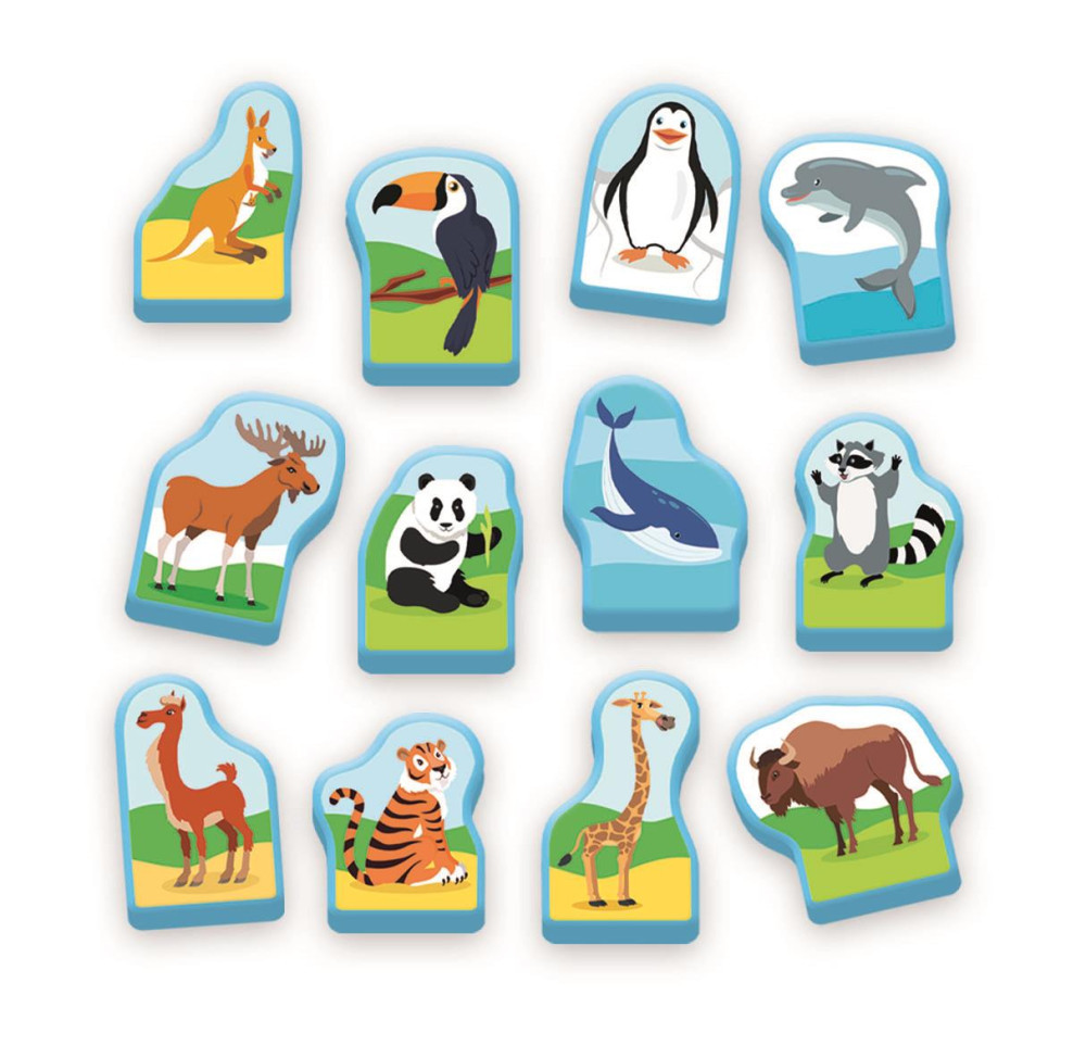 • Szórakoztató módon tanítja az alapvető földrajzi fogalmakat és állatneveket