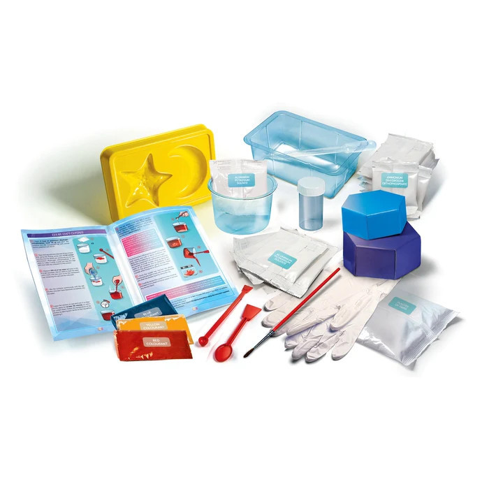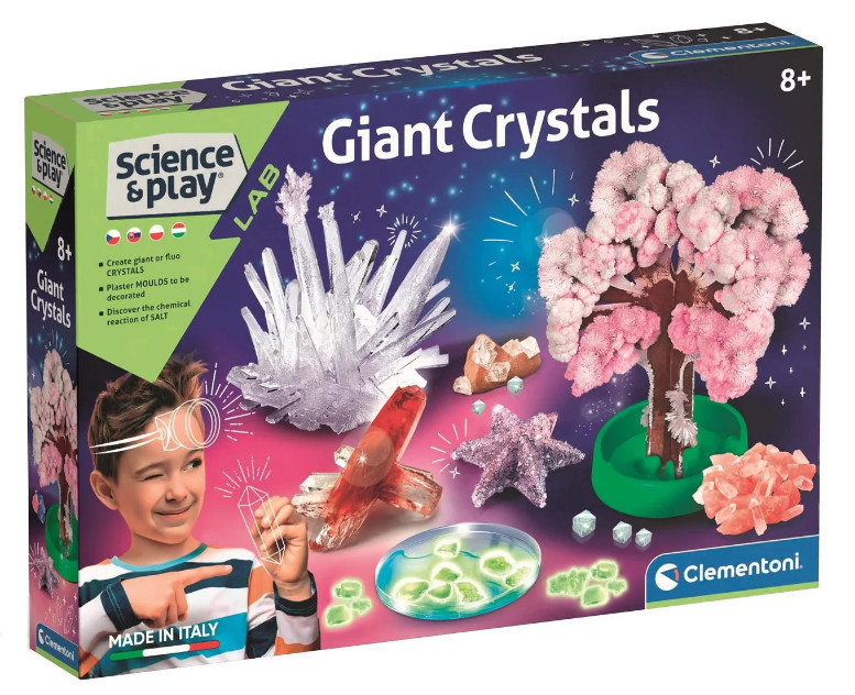 Az óriás kristály készlet segítségével megismerheted a kristályokat, és megtanulhatod hogy készíts áttetsző, izzó, és foszforeszkáló kristályokat. A kristály készítéséhez a szettben minden szükséges anyagot, és eszközt megtalálsz. Felfedezheted hogyan lép egymással reakcióba a só, és különböző anyagok.