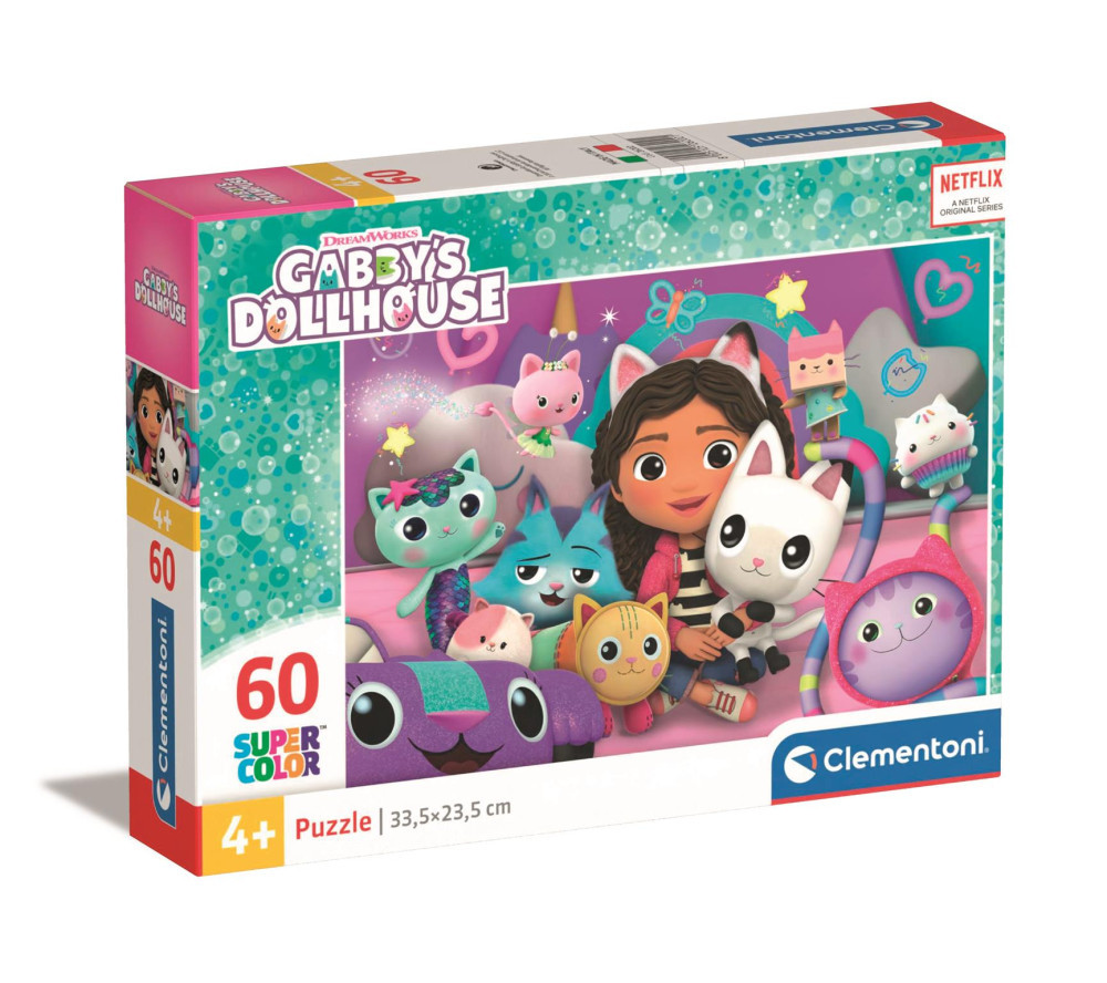 Ismerd meg a Gabby's Dollhouse 60 darabos Super Color Puzzle-t, amivel a kisgyermekek beléphetnek a varázslatos babaház világába!
