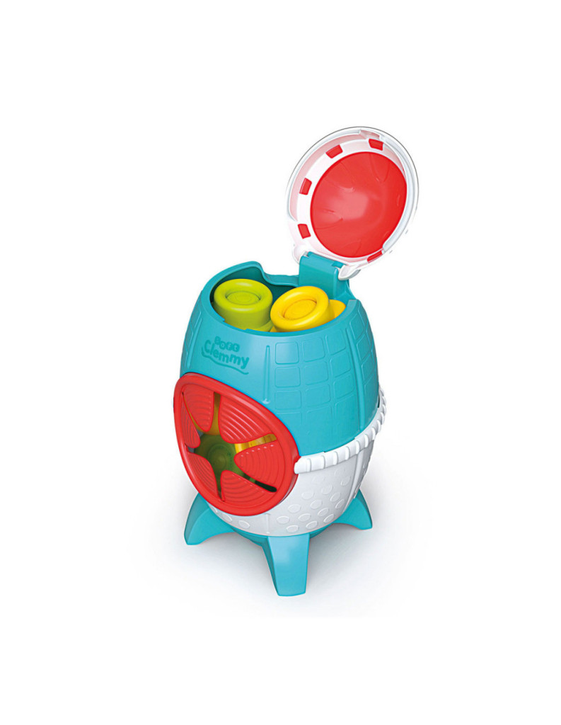 Az űrhajó teteje, és oldala egyaránt nyitható. Az építőkockák puhák, és a kis kezekre méretezték őket, hogy az építőjáték az első perctől sikerélményekben gazdag játék legyen. Fejleszti a finommotorikus készségeket, az érzékelést, és a szem-kéz koordinációt.