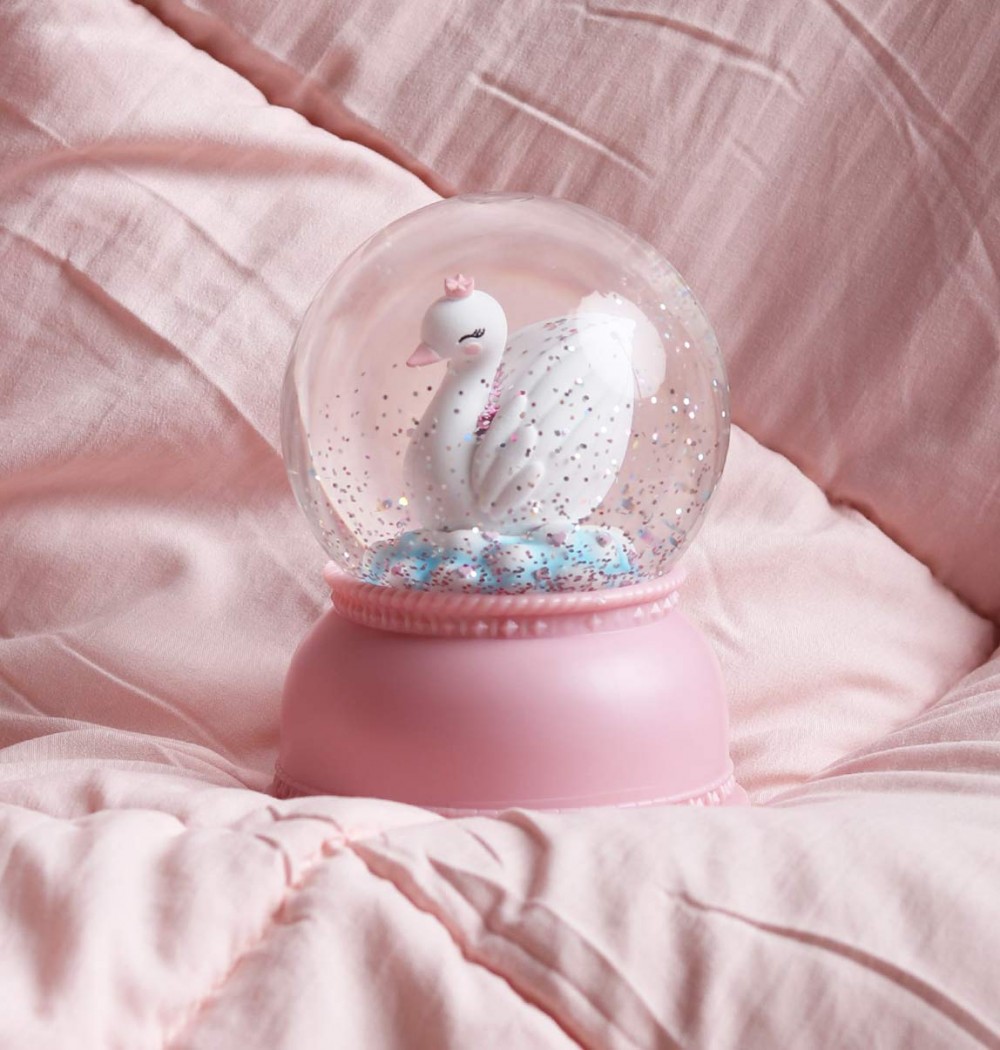 Lenyűgöz a varázslatos hógömb fénye? Igazán szemet gyönyörködtető látvány egy kislány hálószobájában. A benne lévő hattyú egy aranyos rózsaszín koronát visel. És ez még nem minden! Az alján elhelyezkedő ON/OFF (BE/Kikapcsoló) gomb segítségével fénylő csillámok perdülnek táncra és a lámpa különböző színekben pompázik. Milyen varázslatos! A termék 3 db AA elemmel (nem tartozék) működik. A lámpa automatikusan kikapcsol 15 perc után, hogy az elemek minél hosszabb életűek legyenek.