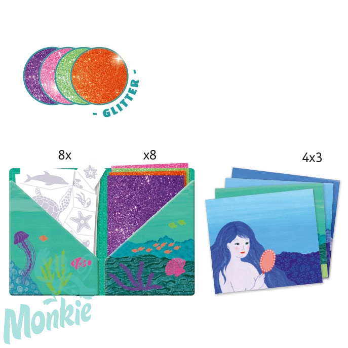 A kollázs technika eredeti megoldása a Djeco-tól. Ezzel a szettel csillogós (glitteres) képeket készíthetsz.