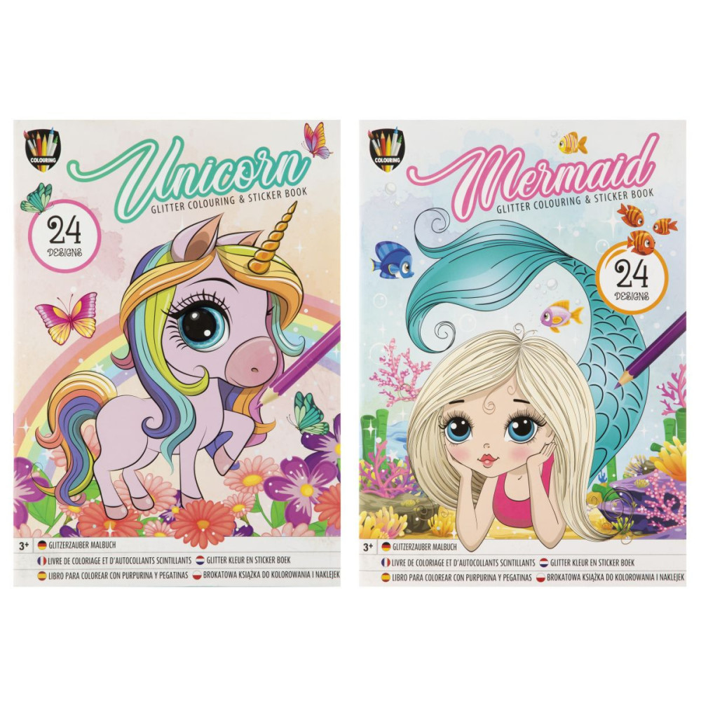 Merülj el a színezés örömében a két féle színezőkönyvben található csodaszép egyszarvú és sellő modellekkel! Műveidet ráadásul most csillogó matricákkal díszítheted!