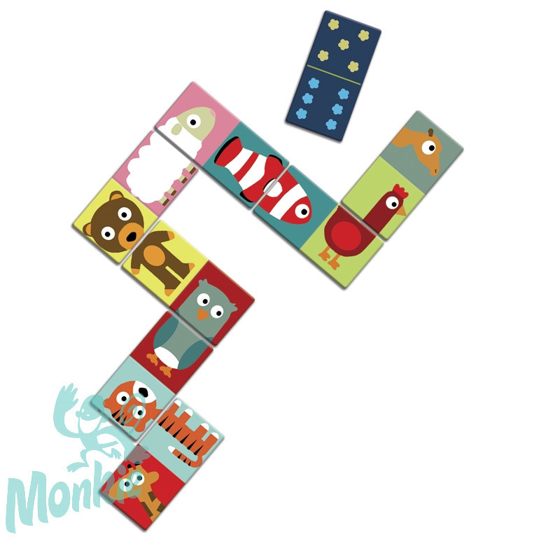 Kreativitást, logikát és memóriát fejlesztő, kétoldalú, nagyméretű, fejlesztő játék. Egyik felén az állatok fejét a lábával kell kell összepárosítani, megfordítva azonban már dominózhatnak is a gyermekek.