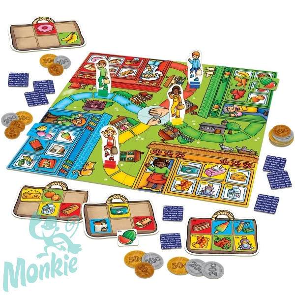 Az Orchard Toys Euros bevásárlás játékában a gyerekek boltba mennek vásárolni, de ügyesnek kell lenniük, hogy elég legyen a pénzük! 6 árucikket kell megvásárolni, az nyer, akinek ez először sikerül anélkül, hogy elfogyna a pénzük. A játékban minden gyerek nem csak vásárló, de egyben boltvezető is. Amikor vevő érkezik az üzletbe, azt udvariasan köszönti és kiszolgálja a kért áruval. A vevőként érkező játékos szintén udvariasan köszön a boltvezetőnek és kéri az árut. Így a gyerekek nem csak a pénz beosztását, de a kulturált vásárlást is megtanulhatják. Ez a játék kiálóan fejleszti a megfigyelőképességet, koncentrációt, számolási készségeket, szociális érzéket, udvarias viselkedést.