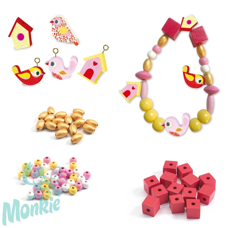 A "Madarak" készlet fából készült gyöngyöket tartalmaz gyönyörű ékszerek készítéséhez. A színek és formák jól átgondoltak, kedvesen tervezettek, egyszerű a gyöngyök összeválogatása egy csodásan harmonikus eredmény érdekében. A gyermek a fűzőszálra felfűzi a gyöngyöket, picinyke madárkákat és házikókat, a saját kedve, ízlése szerint. A készletben található hozzávalókból szép nyakláncokat vagy karkötőket készíthet. A gyermek fűzhet, alkothat egyedül, de a családban közös tevékenységnek is nagyszerű.