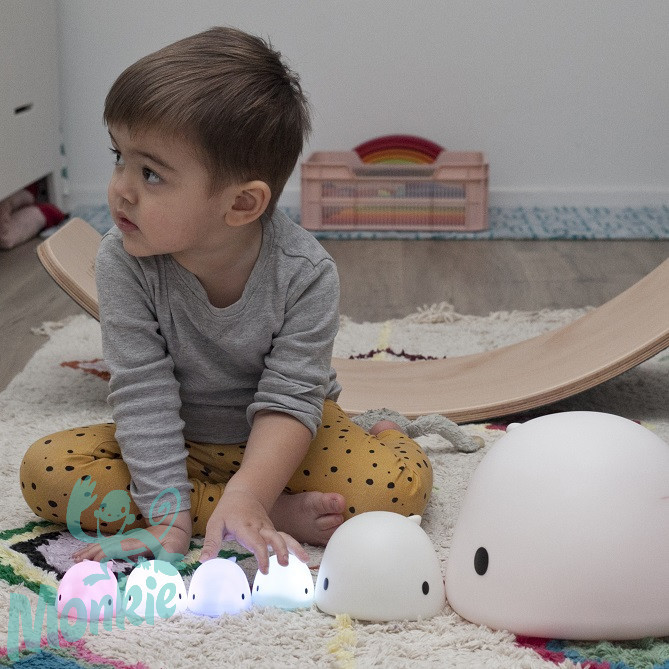 Úgy tűnik Moby a parton is tökéletesen boldogul. Ez az aranyos bálna éjjeli lámpa kemény anyagból készült és lágy fényt biztosít a gyerekeknek, bárhol is legyenek. USB kábellel újratölthető, így nincs szükség elemekre. Moby érintésre megváltoztatja a színét. Választhatsz, hogy 15 perc elteltével automatikusan kikapcsoljon a lámpa vagy egész éjjel világítson.