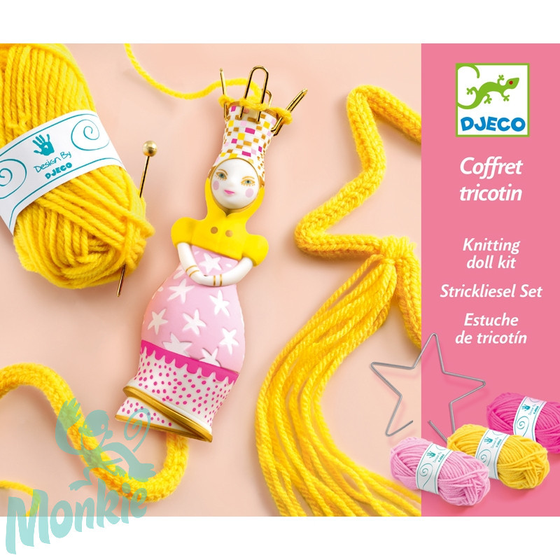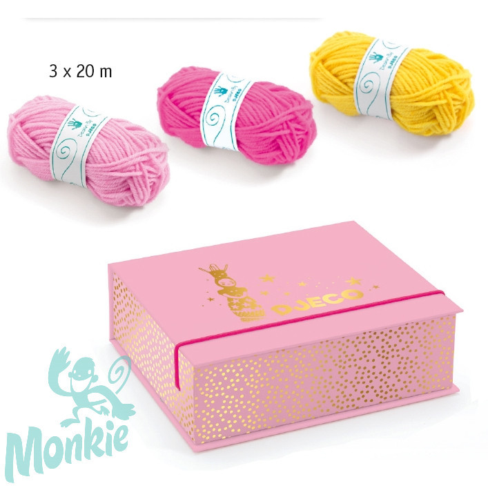 A készlet tartalma: 1 db kötőbaba, 3x20 m különböző színű fonal, csillag alakú forma, színes útmutató füzet egy lenyűgöző tárolódobozba csomagolva.