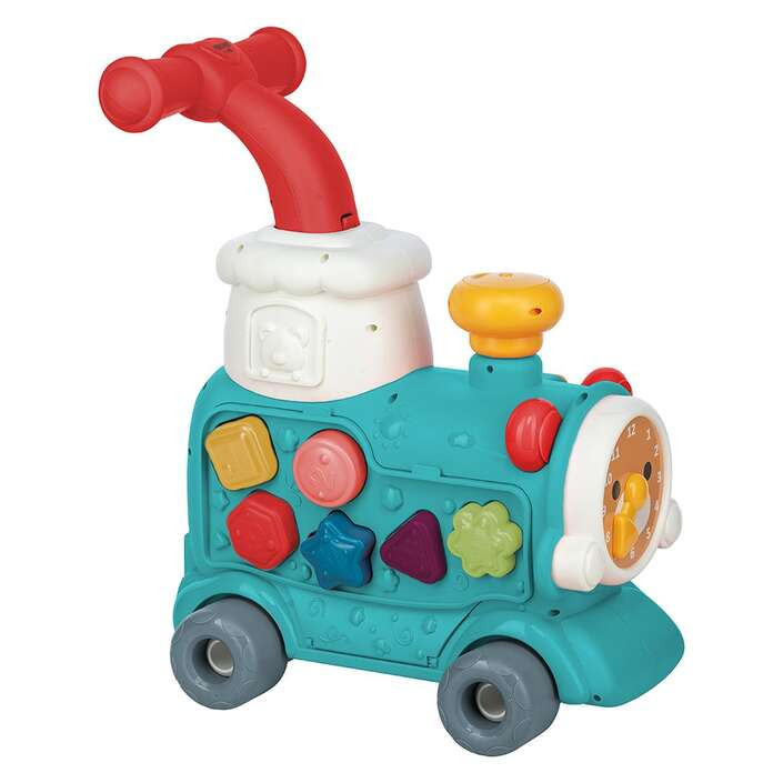 A Magic Train rengeteg fejlesztő funkcióval rendelkezik: világító és zenélő minizongora, forgó fogaskerekek, gőzszimuláció, formabedobó és sok más izgalmas elem serkenti a fantáziát, a mozgást, a finommotorikát és a logikus gondolkodást. A kéménybe tölthető víz segítségével a vonat valódi „gőzt” fúj, amitől a játék igazán varázslatossá válik!