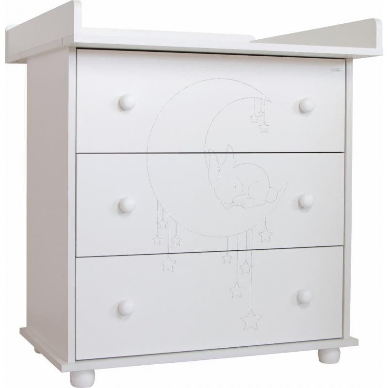 Hasznos és funkcionális pelenkázószekrény három tágas fiókkal ruháknak, pelenkáknak, kozmetikai- és más babafelszerelésnek.