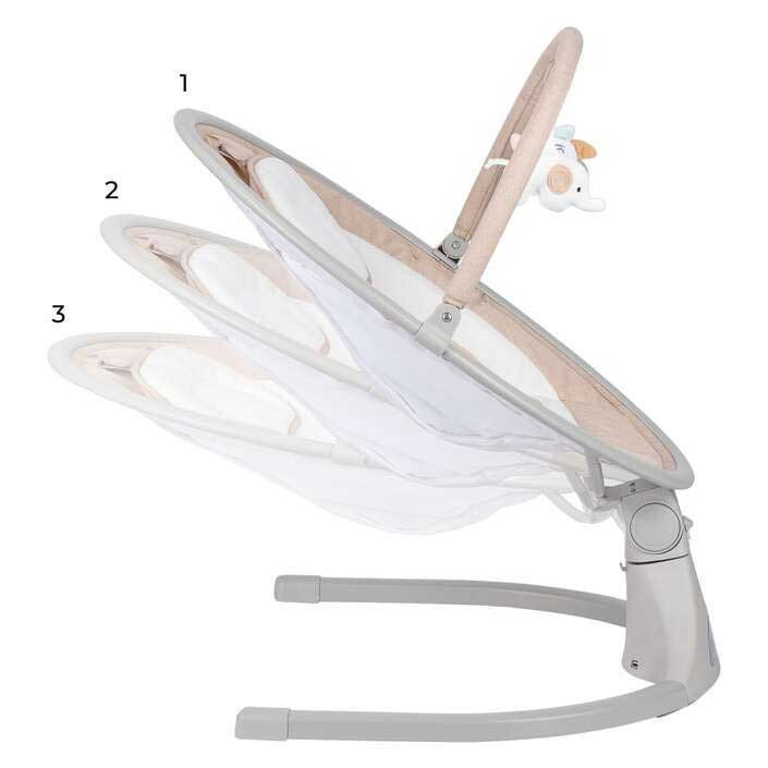 3 pozícióba állítható háttámla: A háttámla háromféle dőlésszöge állítható, így a baba mindig a számára legkényelmesebb testhelyzetben lehet. Legyen szó játékos nézelődésről vagy szundikálásról, könnyedén beállíthatod a megfelelő pozíciót.