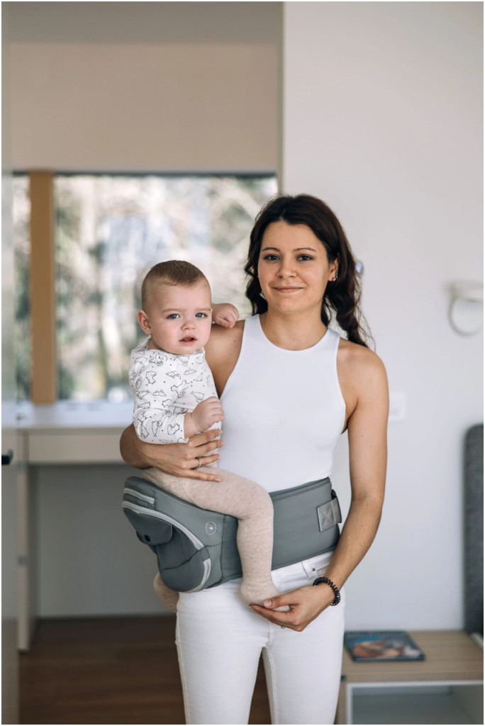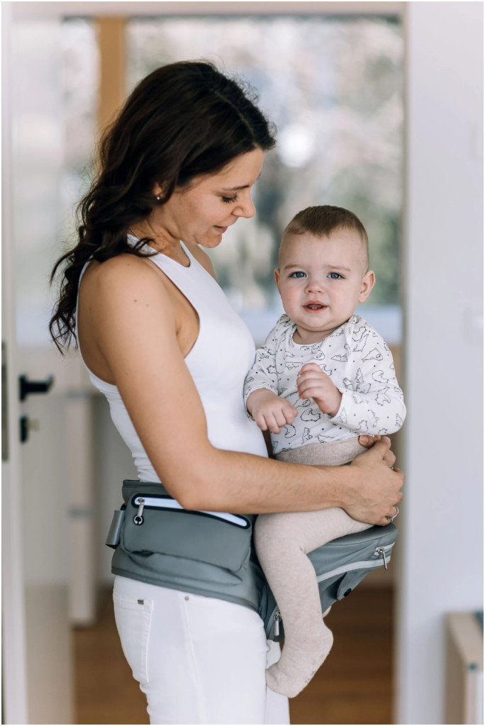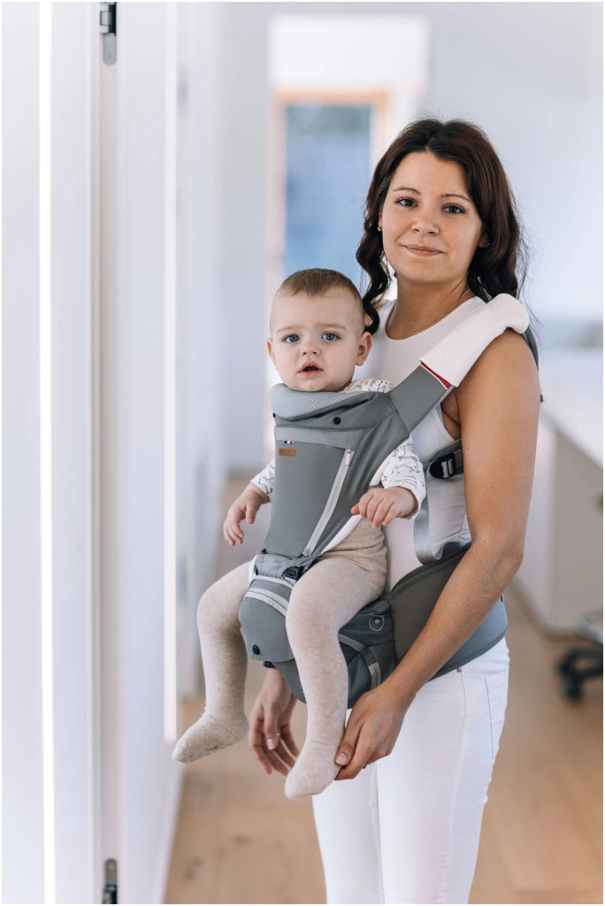 Az első hónapokban, amikor a baba csípőízületei még fejlődnek, elengedhetetlen, hogy a babát a megfelelő testtartásban hordjuk. Ez a pozíció nem csak a csípő és a gerinc fejlődése szempontjából a legjobb, de a baba számára is a legkényelmesebb. A lábak alátámasztása és helyzete megfelelő helyzetben tartja a baba gerincét. A kényelmesebb hordozás és az ölben való pihenés érdekében a fejtámasz megakadályozza a fej megingását. Biztosítja a helyes hordozási módot, mivel a gyermek lábai az ergonómikus M pozícióban maradnak.