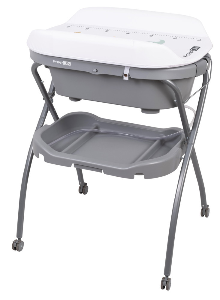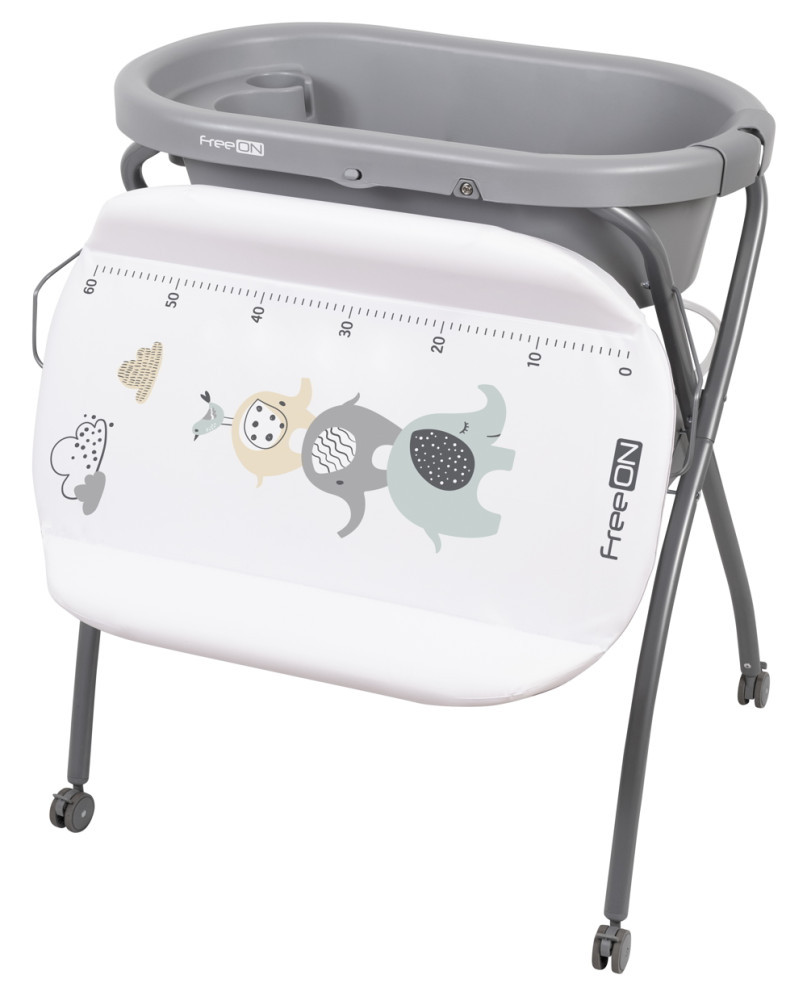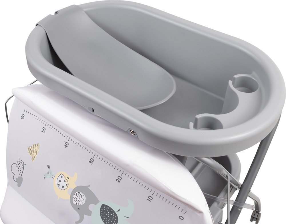 Babafürdető szett acél vázszerkezettel, 4 fékezhető kerékkel, tároló tálcával és egy Koala mintájú pelenkázó lappal (a pel.lap. max 11 kg-ig terhelhető).
