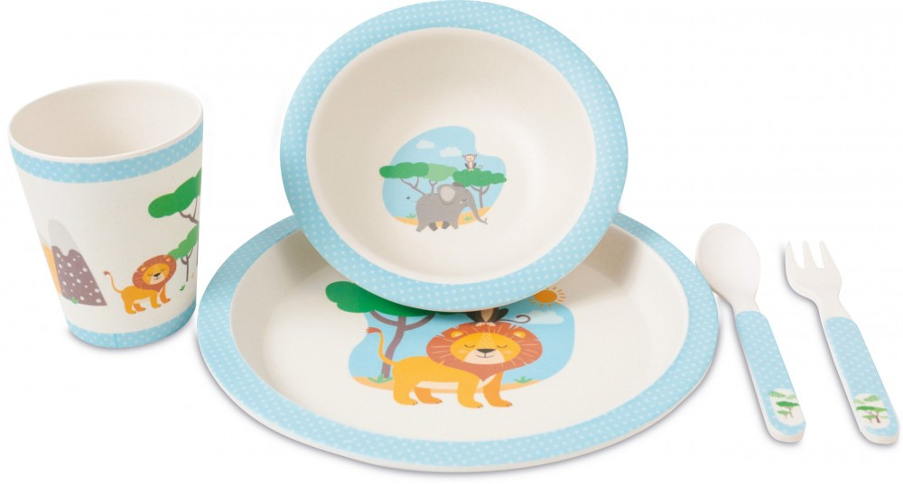 FreeON bambusz étkészlet 5 db-os - Kék szafari