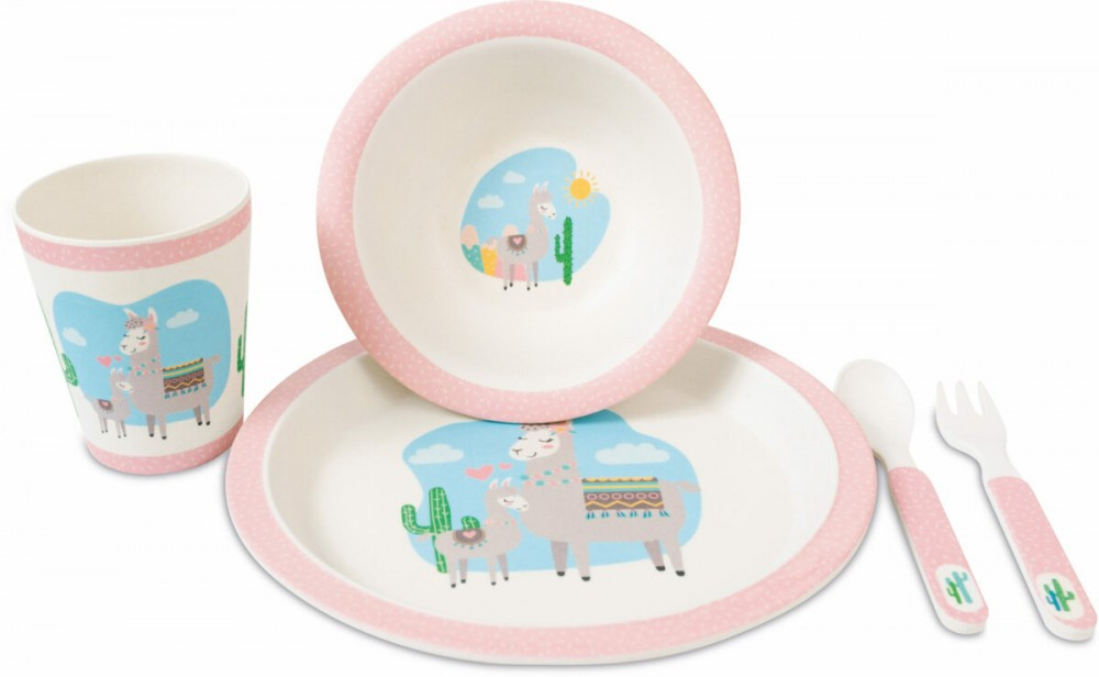 FreeON bambusz étkészlet 5 db-os - Rózsaszín láma